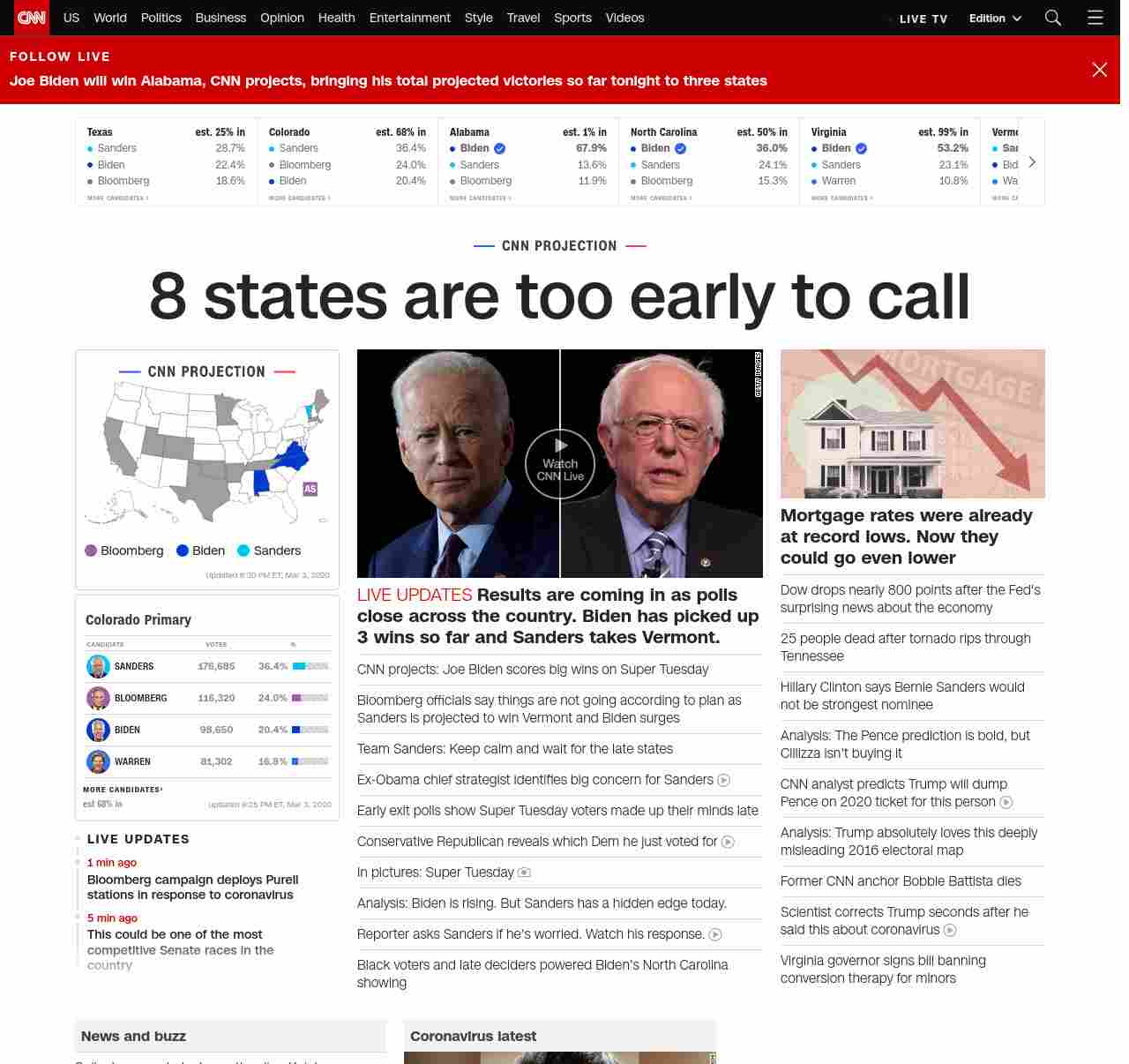CNN3: “:”u003cstrong>Biden and Sanders fight for the state’s 228 delegates in the second-largest Super Tuesday contestu003c/strong>”, “BANNER=|pagerendered| ((lubuntu at wor3))