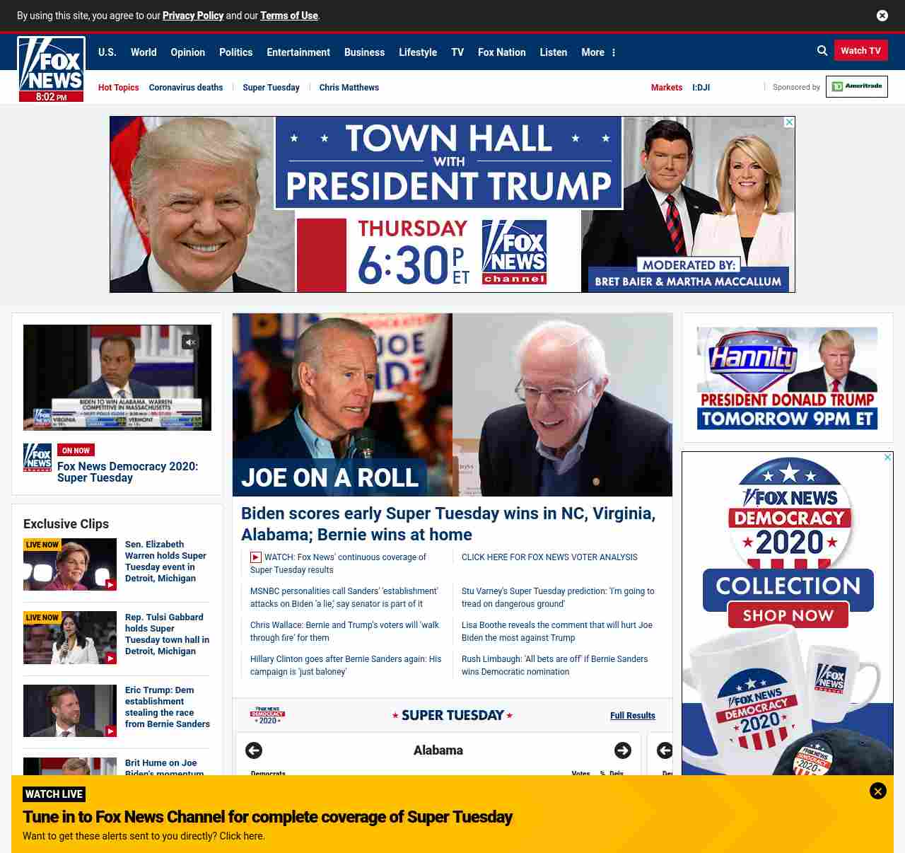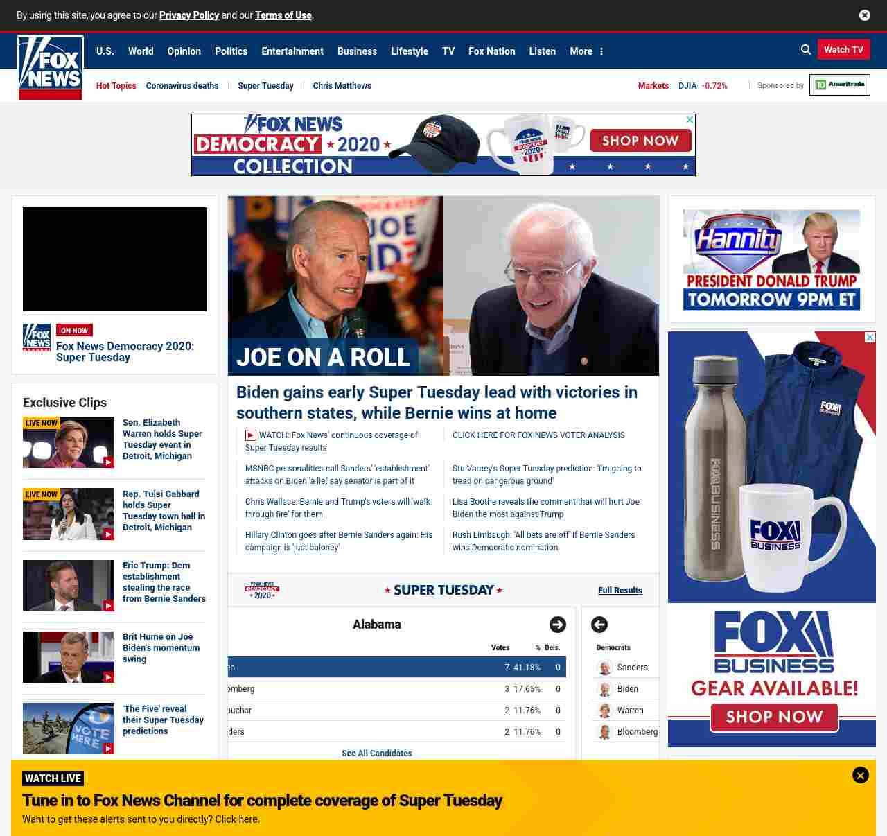 FN: [[JOE ON A ROLL]] Biden scores early Super Tuesday wins in NC, Virginia, Alabama; Bernie wins at home ((lubuntu at wor3))