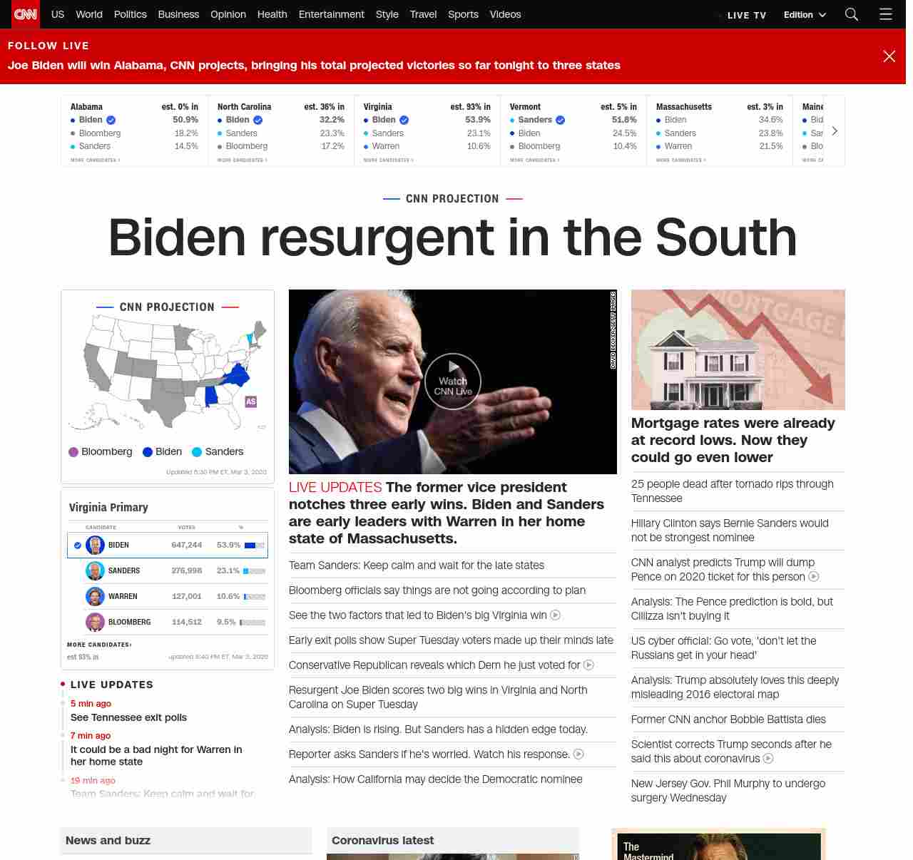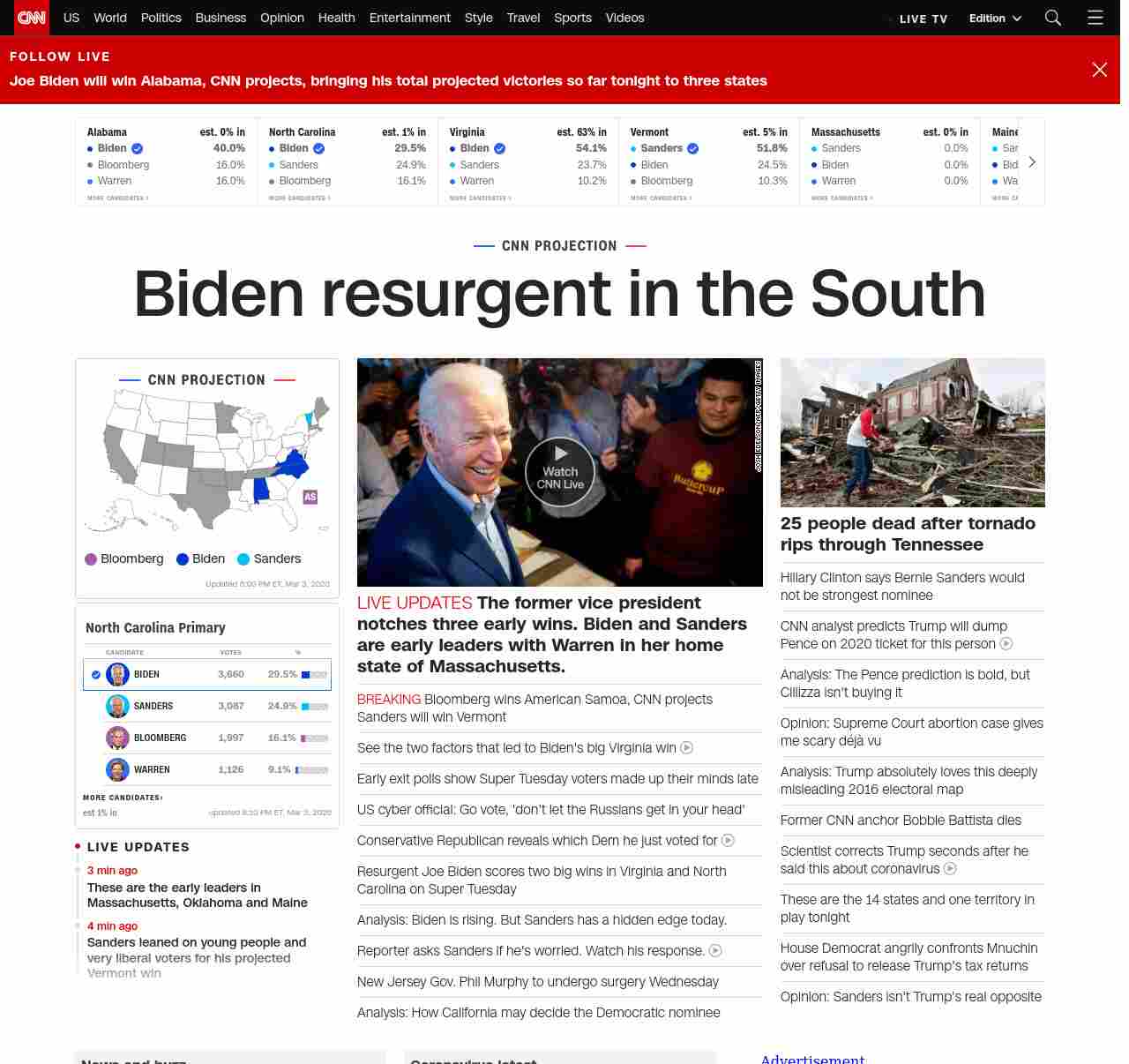 || banner-text–natural”> Biden racks up three wins in the South tonight ||” , title: “CNN – Breaking News, Latest News and Videos” , siblings: {“articleList”:[{“uri”:”/politics/live-news/super-tuesday-results-2020/index.html”,”headline”:”u003cstrong>The former vice president notches three early wins. Biden and Sanders are early leaders with Warren in her home state of Massachusetts.u003c/strong>”,”thumbnail”:”//cdn.cnn.com/cnnnext/dam/assets/200303181309-02-super-tuesday-biden-0303-small-11.jpg”,”duration”:””,”description”:””,”layout”:””