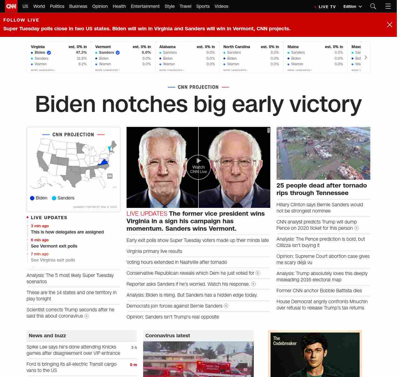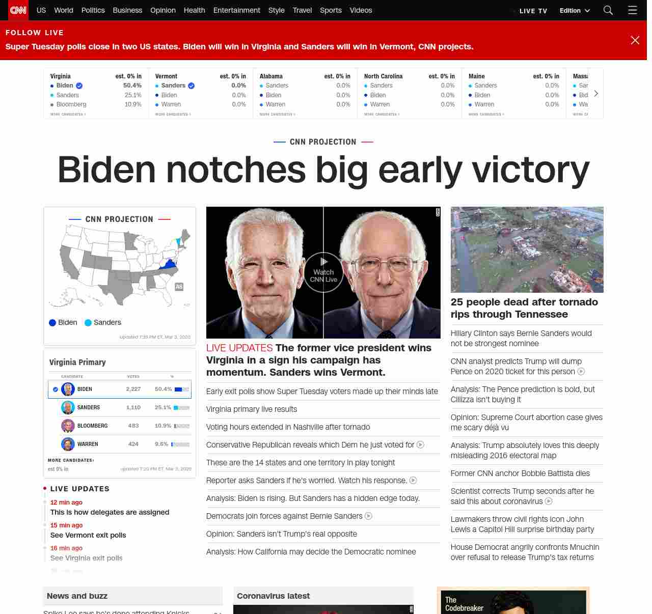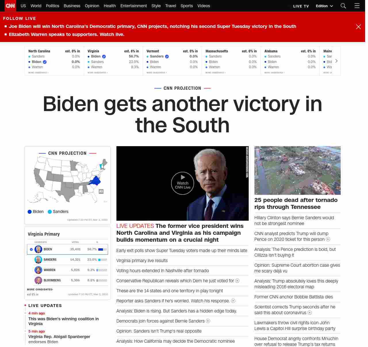 || banner-text–natural”> Biden notches big early victory ||” , title: “CNN – Breaking News, Latest News and Videos” , siblings: {“articleList”:[{“uri”:”/politics/live-news/super-tuesday-results-2020/index.html”,”headline”:”u003cstrong>The former vice president wins Virginia in a sign his campaign has momentum. Sanders wins Vermont.u003c/strong>”,”thumbnail”:”//cdn.cnn.com/cnnnext/dam/assets/200303181315-03-biden-sanders-split-small-11.jpg”,”duration”:””,”description”:””,”layout”:””