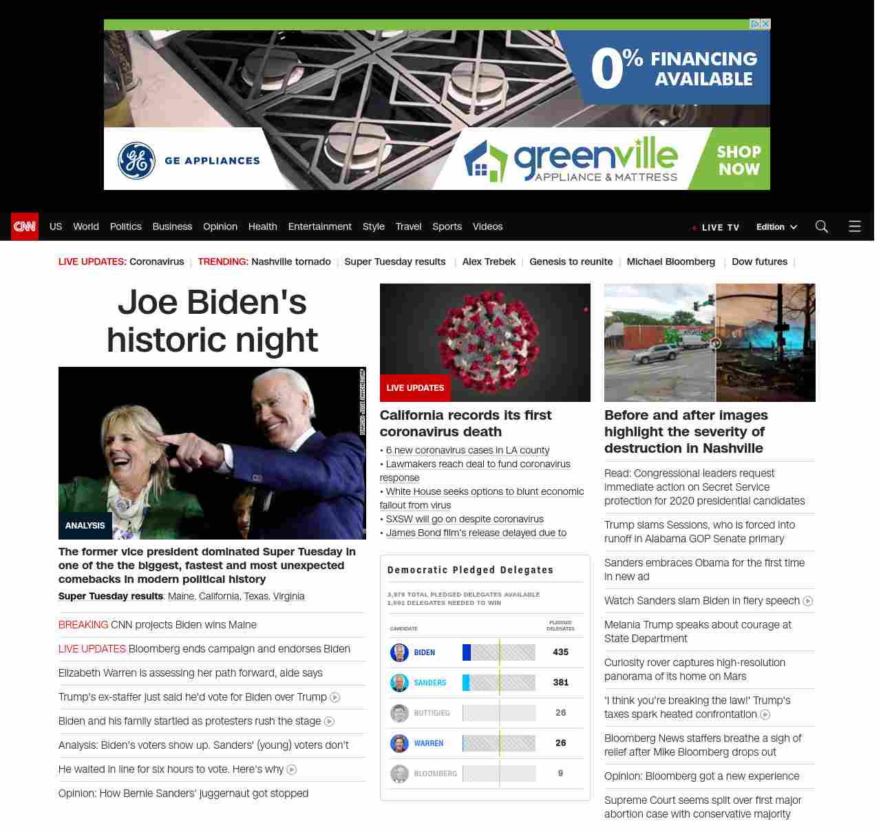 || screaming-banner-text banner-text-size–char-29″ data-analytics=”_list-hierarchical-xs_article_”> Joe Biden’s historic night ||” , title: “CNN – Breaking News, Latest News and Videos” , siblings: {“articleList”:[{“uri”:”/2020/03/04/politics/joe-biden-super-tuesday-historic-comeback/index.html”,”headline”:”u003cstrong>The former vice president dominated Super Tuesday in one of the the biggest, fastest and most unexpected comebacks in modern political historyu003c/strong>”,”thumbnail”:”//cdn.cnn.com/cnnnext/dam/assets/200304002248-52-super-tuesday-0303-bidens-happy-small-11.jpg”,”duration”:””,”description”:”u003ca href=”https://www.preview.cnn.com/2020/03/04/politics/super-tuesday-results-by-state/index.html” target=”_blank”>u003cstrong>Super Tuesday resultsu003c/strong>u003c/a>: u003ca href=”https://www.cnn.com/election/2020/state/maine” target=”_blank”>Maineu003c/a>, u003ca href=”http://www.cnn.com/2020/03/03/politics/california-primary-results-live/index.html” target=”_blank”>Californiau003c/a>, u003ca href=”http://www.cnn.com/2020/03/03/politics/texas-primary-results-live/index.html” target=”_blank”>Texasu003c/a>, u003ca href=”http://www.cnn.com/2020/03/03/politics/virginia-primary-results-live/index.html” target=”_blank”>Virginiau003c/a>”,”layout”:””