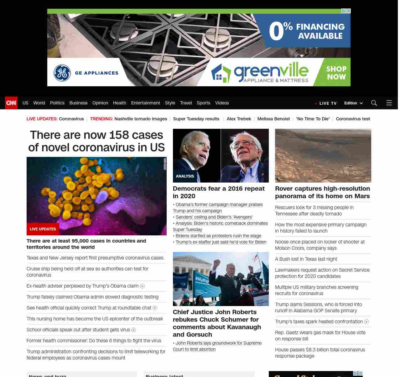 || screaming-banner-text banner-text-size–char-47″ data-analytics=”_list-hierarchical-xs_hyperlink_”> There are now 158 cases of novel coronavirus in US ||” , title: “CNN – Breaking News, Latest News and Videos” , siblings: {“articleList”:[{“uri”:”/2020/03/04/health/us-coronavirus-update-wednesday/index.html”,”headline”:”Cruise ship being held off at sea so authorities can test for coronavirus”,”thumbnail”:”//cdn.cnn.com/cnnnext/dam/assets/200304041310-05-coronavirus-0303-seattle-small-11.jpg”,”duration”:””,”description”:”The US death toll from the coronavirusu003ca href=”https://www.cnn.com/2020/03/04/asia/novel-coronavirus-covid-19-intl-hnk/index.html” target=”_blank”> climbed to 11 Wednesdayu003c/a> as officials around the country urged local communities to think about ways to stop the virus from spreading.”,”layout”:””