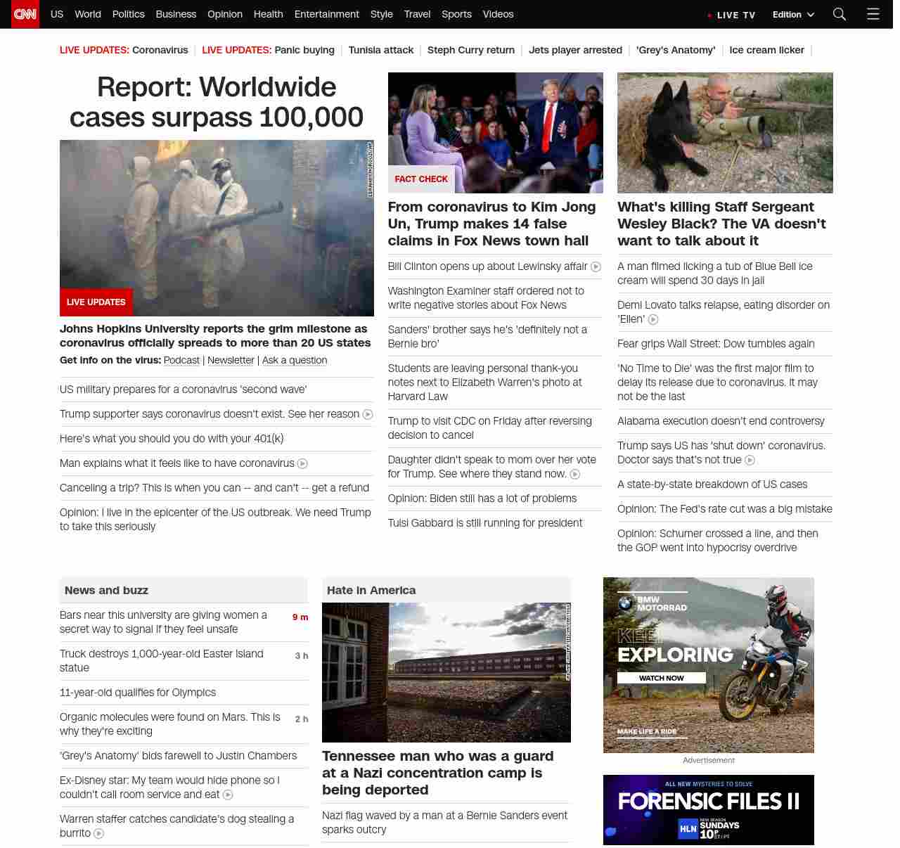 || screaming-banner-text banner-text-size–char-41″ data-analytics=”_list-hierarchical-xs_hyperlink_”> Report: Worldwide cases surpass 100,000 ||” , title: “CNN – Breaking News, Latest News and Videos” , siblings: {“articleList”:[{“uri”:”/videos/politics/2020/03/06/reality-check-trump-coronavirus-confusion-avlon-newday-vpx.cnn”,”headline”:”Trump supporter says coronavirus doesn’t exist. See her reason”,”thumbnail”:”//cdn.cnn.com/cnnnext/dam/assets/200302163544-01-trump-coronavirus-0302-small-11.jpg”,”duration”:”03:14″,”description”:”CNN’s John Avlon explains how President Trump is sowing confusion about the novel coronavirus.”,”layout”:””,”iconType”:”video”