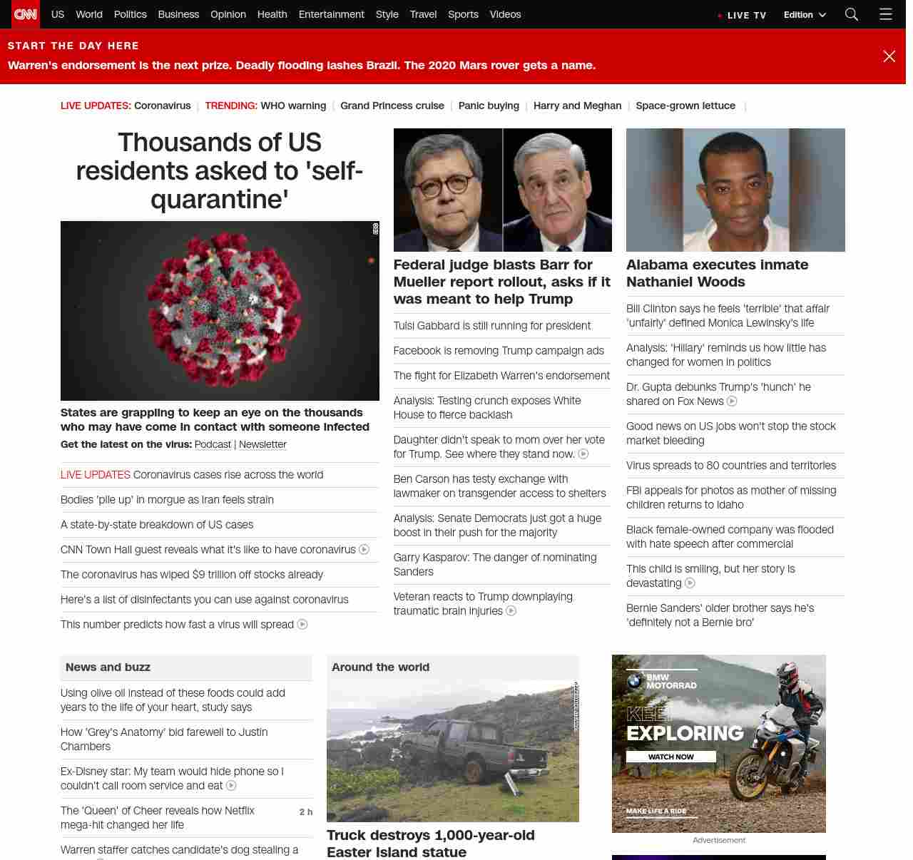 || screaming-banner-text banner-text-size–char-47″ data-analytics=”_list-hierarchical-xs_article_”> Thousands of US residents asked to ‘self-quarantine’ ||” , title: “CNN – Breaking News, Latest News and Videos” , siblings: {“articleList”:[{“uri”:”/2020/03/06/health/self-quarantine-explainer-procedures/index.html”,”headline”:”u003cstrong>States are grappling to keep an eye on the thousands who may have come in contact with someone infected u003c/strong>”,”thumbnail”:”//cdn.cnn.com/cnnnext/dam/assets/200130165125-corona-virus-cdc-image-small-11.jpg”,”duration”:””,”description”:”u003cstrong>Get the latest on the virus:u003c/strong> u003ca href=”https://www.cnn.com/audio/podcasts/corona-virus” target=”_blank”>Podcastu003c/a> | u003ca href=”https://www.cnn.com/specials/coronavirus-newsletter?utm_source=hp&source=hp” target=”_blank”>Newsletteru003c/a>”,”layout”:””