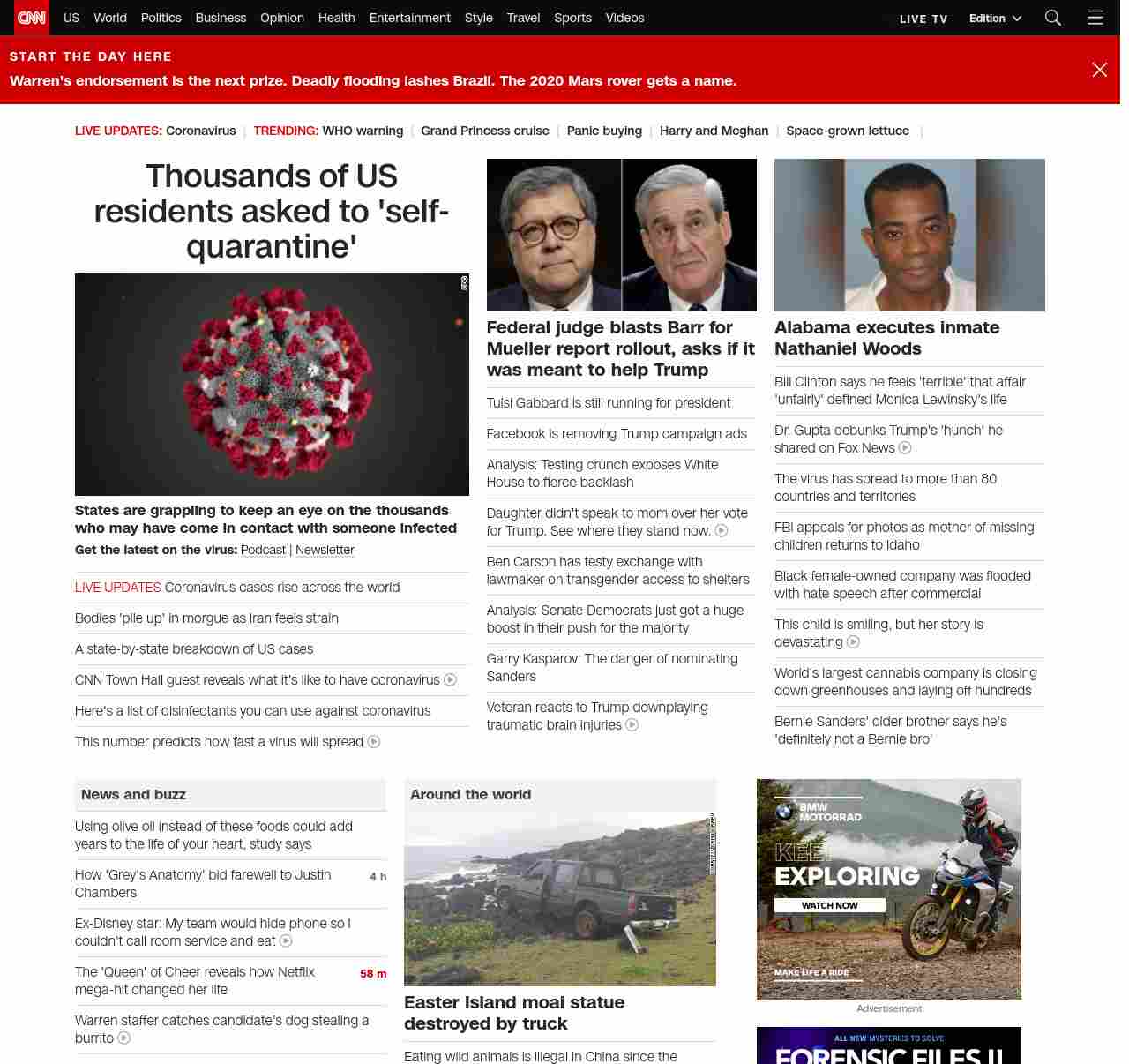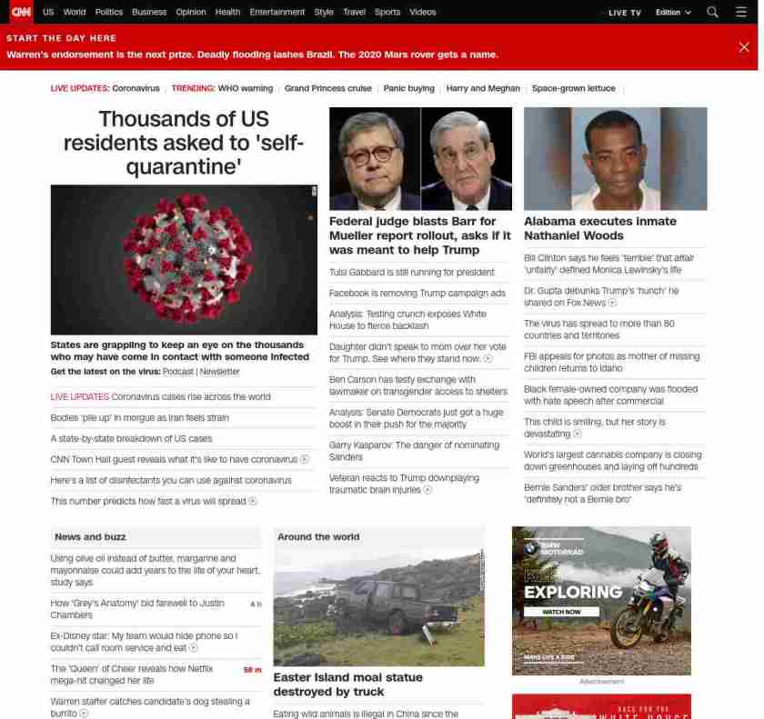 || screaming-banner-text banner-text-size–char-47″ data-analytics=”_list-hierarchical-xs_article_”> Thousands of US residents asked to ‘self-quarantine’ ||” , title: “CNN – Breaking News, Latest News and Videos” , siblings: {“articleList”:[{“uri”:”/2020/03/06/health/self-quarantine-explainer-procedures/index.html”,”headline”:”u003cstrong>States are grappling to keep an eye on the thousands who may have come in contact with someone infected u003c/strong>”,”thumbnail”:”//cdn.cnn.com/cnnnext/dam/assets/200306040557-woman-home-sick-stock-small-11.jpg”,”duration”:””,”description”:”u003cstrong>Get the latest on the virus:u003c/strong> u003ca href=”https://www.cnn.com/audio/podcasts/corona-virus” target=”_blank”>Podcastu003c/a> | u003ca href=”https://www.cnn.com/specials/coronavirus-newsletter” target=”_blank”>Newsletteru003c/a>”,”layout”:””
