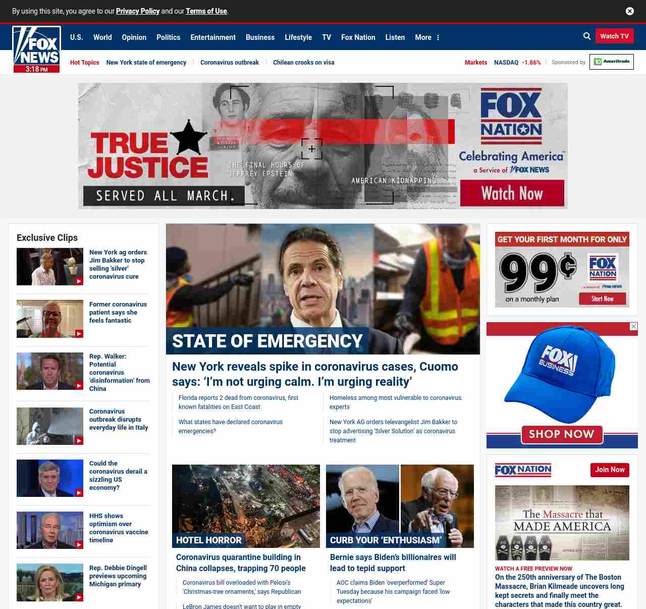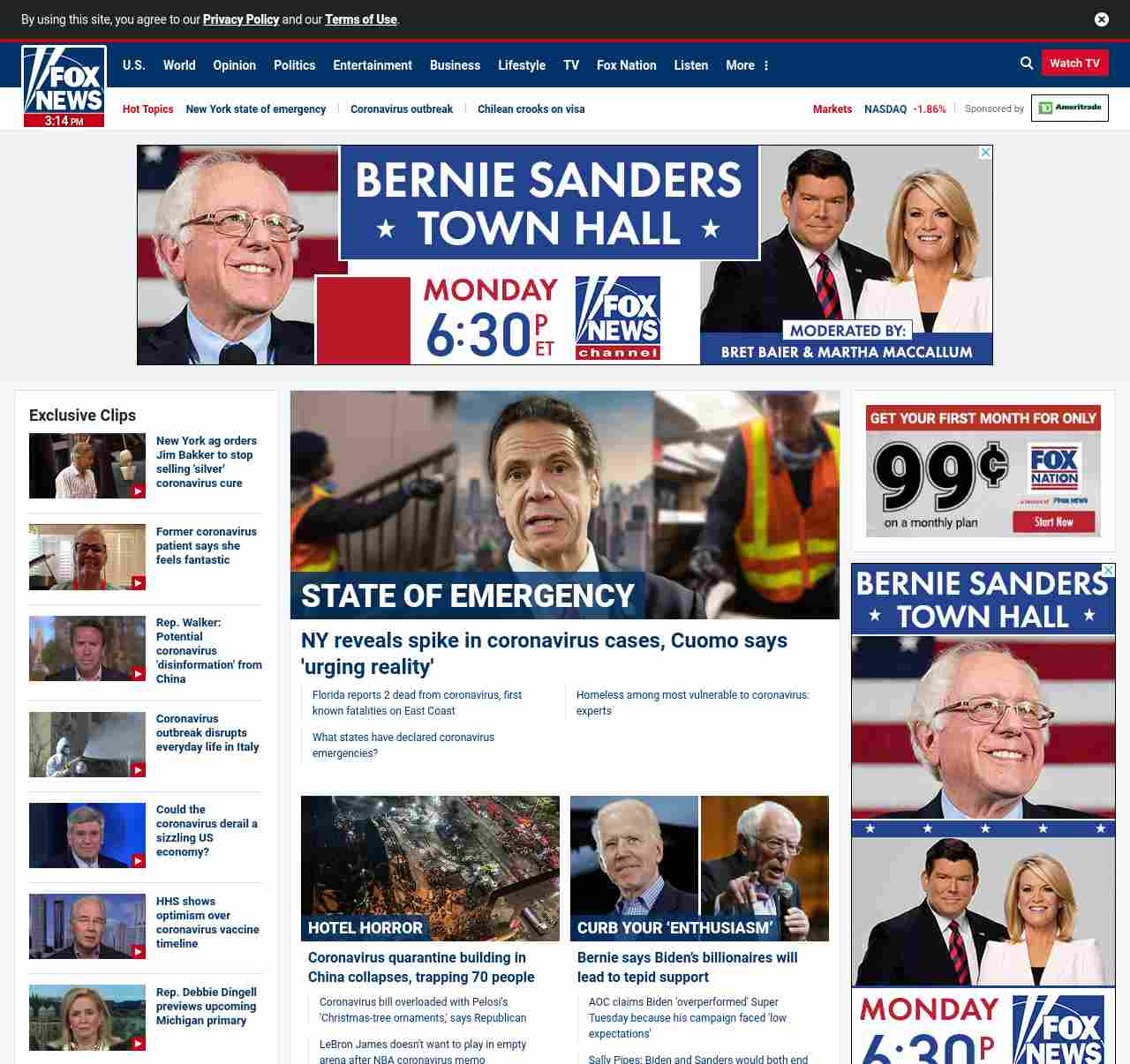 FN: [[STATE OF EMERGENCY]] New York reveals spike in coronavirus cases, Cuomo says: ‘I’m not urging calm. I’m urging reality’ ((lubuntu at wor3))