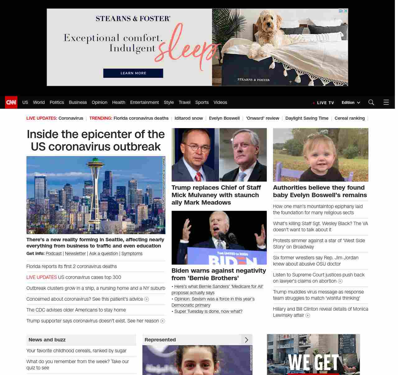 || screaming-banner-text banner-text-size–char-47″ data-analytics=”_list-hierarchical-xs_article_”> Inside the epicenter of the US coronavirus outbreak ||” , title: “CNN – Breaking News, Latest News and Videos” , siblings: {“articleList”:[{“uri”:”/2020/03/06/us/seattle-changing-life-coronavirus/index.html”,”headline”:”u003cstrong>There’s a new reality forming in Seattle, affecting nearly everything from business to traffic and even educationu003c/strong>”,”thumbnail”:”//cdn.cnn.com/cnnnext/dam/assets/200307081728-01-seattle-skyline-file-small-11.jpg”,”duration”:””,”description”:”u003cstrong>Get info:u003c/strong> u003ca href=”https://www.cnn.com/audio/podcasts/corona-virus” target=”_blank”>Podcastu003c/a> | u003ca href=”https://www.cnn.com/specials/coronavirus-newsletter?utm_source=hp&source=hp” target=”_blank”>Newsletteru003c/a> | u003ca href=”https://www.cnn.com/2020/03/04/us/coronavirus-town-hall-questions/index.html” target=”_blank”>Ask a questionu003c/a> | u003ca href=”https://www.cnn.com/2020/03/01/health/coronavirus-symptoms-treatment/index.html” target=”_blank”>Symptomsu003c/a>”,”layout”:””