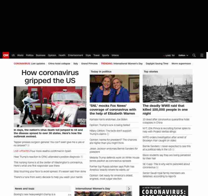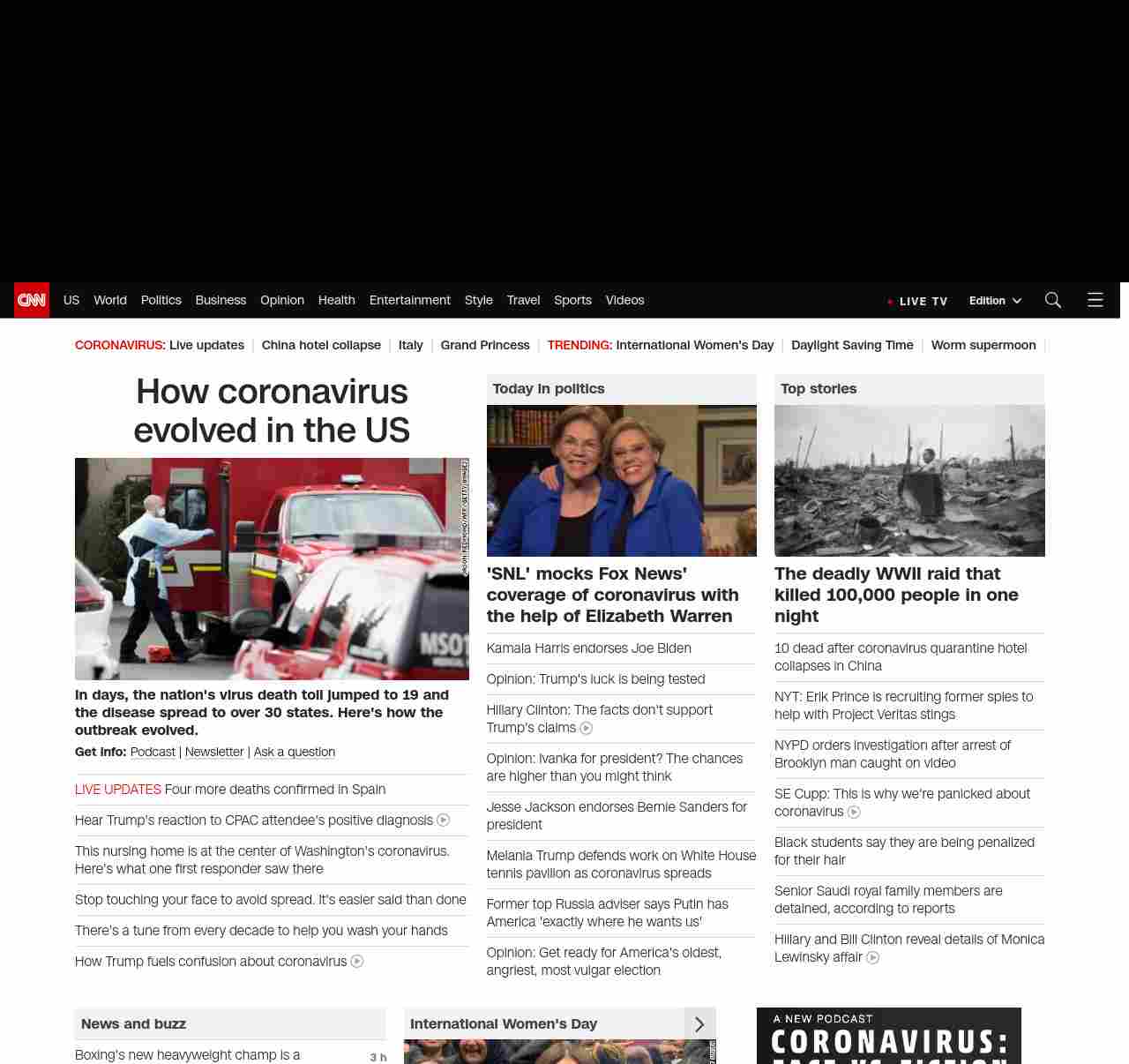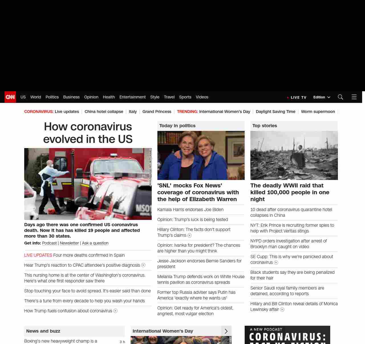 || screaming-banner-text banner-text-size–char-35″ data-analytics=”_list-hierarchical-xs_article_”> How coronavirus evolved in the US ||” , title: “CNN – Breaking News, Latest News and Videos” , siblings: {“articleList”:[{“uri”:”/2020/03/08/health/coronavirus-evolved/index.html”,”headline”:”u003cstrong>Days ago there was one confirmed US coronavirus death. Now it has has killed 19 people and affected more than 30 states. u003c/strong>”,”thumbnail”:”//cdn.cnn.com/cnnnext/dam/assets/200306230756-01-kirkland-washington-coronavirus-0305-small-11.jpg”,”duration”:””,”description”:”u003cstrong>Get info: u003c/strong>u003ca href=”https://www.cnn.com/audio/podcasts/corona-virus” target=”_blank”>Podcastu003c/a> | u003ca href=”https://www.cnn.com/specials/coronavirus-newsletter?utm_source=hp&source=hp” target=”_blank”>Newsletteru003c/a> | u003ca href=”https://www.cnn.com/2020/03/04/us/coronavirus-town-hall-questions/index.html” target=”_blank”>Ask a question u003c/a>”,”layout”:””