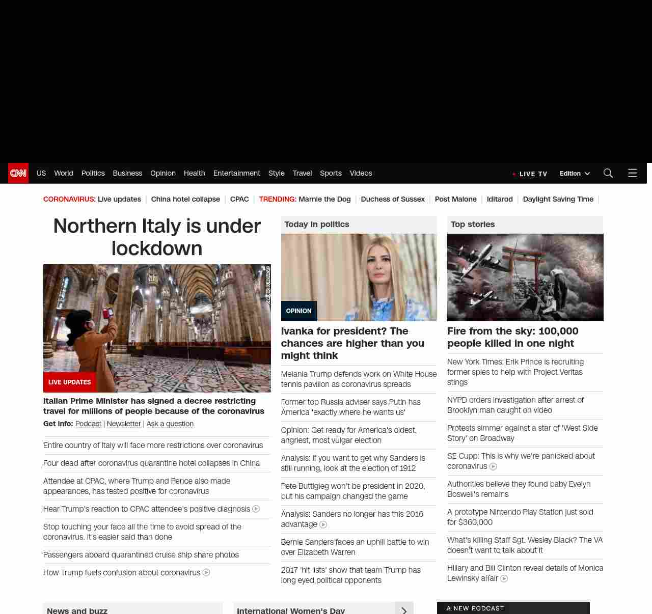 || screaming-banner-text banner-text-size–char-35″ data-analytics=”_list-hierarchical-xs_hyperlink_”> Northern Italy is under lockdown ||” , title: “CNN – Breaking News, Latest News and Videos” , siblings: {“articleList”:[{“uri”:”/2020/03/08/asia/coronavirus-covid-19-update-intl-hnk/index.html”,”headline”:”Entire country of Italy will face more restrictions over coronavirus”,”thumbnail”:”//cdn.cnn.com/cnnnext/dam/assets/200308132427-italy-coronavirus-small-11.jpg”,”duration”:””,”description”:”Italian Prime Minister Giuseppe Conte signed a decree early Sunday that will put millions of people across northern Italy under lockdown due to the u003ca href=”https://www.cnn.com/asia/live-news/coronavirus-outbreak-03-08-20-intl-hnk/index.html” target=”_blank”>novel coronavirusu003c/a>.”,”layout”:””