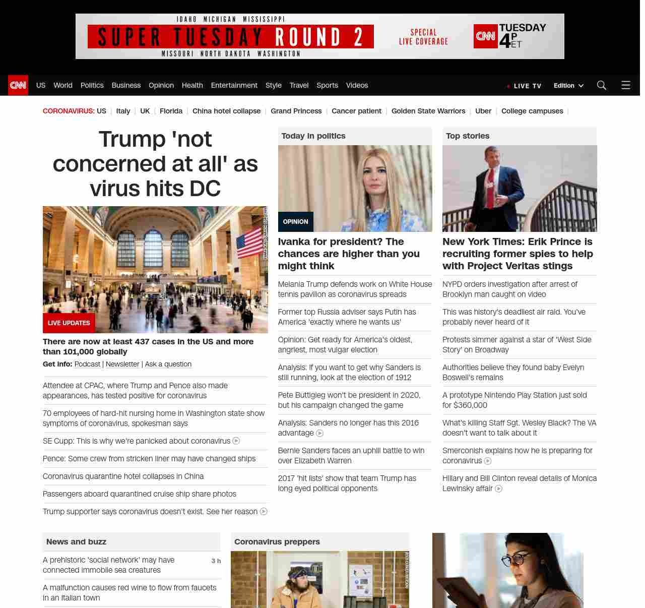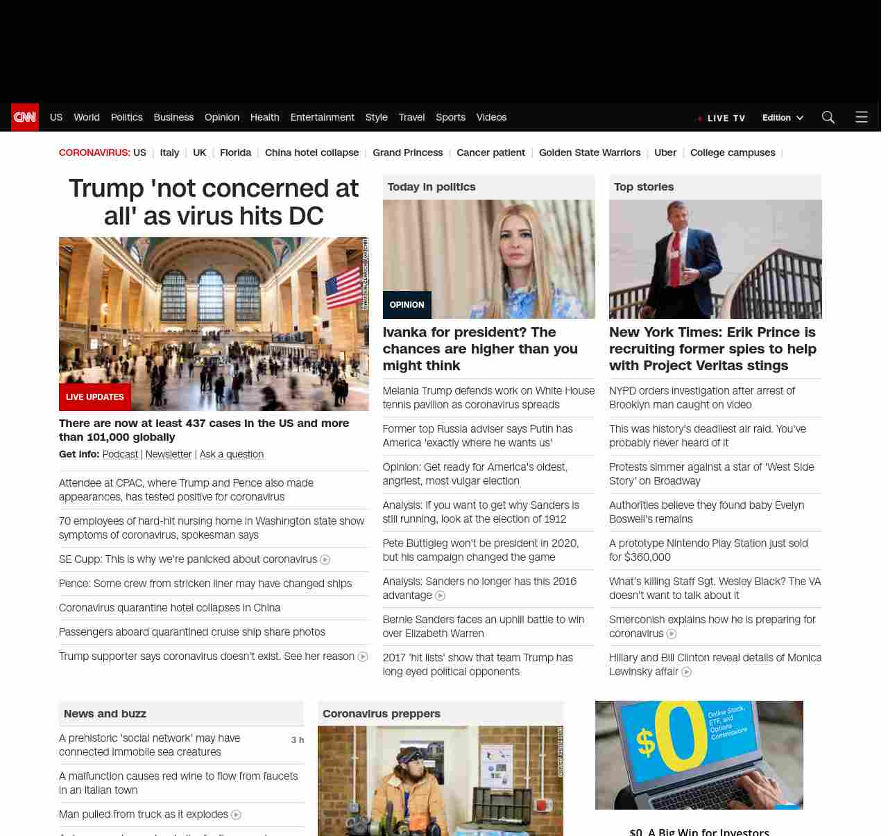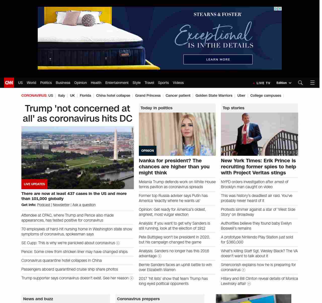 || screaming-banner-text banner-text-size–char-38″ data-analytics=”_list-hierarchical-xs_hyperlink_”> Coronavirus cases logged in 30 states ||” , title: “CNN – Breaking News, Latest News and Videos” , siblings: {“articleList”:[{“uri”:”/2020/03/07/politics/cpac-coronavirus-tested-positive/index.html”,”headline”:”Attendee at CPAC, where Trump and Pence also made appearances, has tested positive for coronavirus”,”thumbnail”:”//cdn.cnn.com/cnnnext/dam/assets/200305221748-cpac-sign-small-11.jpg”,”duration”:””,”description”:”The u003ca href=”https://www.conservative.org/” target=”_blank”>American Conservative Unionu003c/a> announced on Saturday that one of the attendees at last week’s u003ca href=”https://www.cnn.com/2020/02/29/politics/donald-trump-cpac-2020/index.html” target=”_blank”>Conservative Political Action Conferenceu003c/a> in National Harbor, Maryland, has tested u003ca href=”https://www.cnn.com/asia/live-news/coronavirus-outbreak-03-07-20-intl-hnk/h_583af80467602a31f57568c42dfc6c00″ target=”_blank”>positive for coronavirus.u003c/a>”,”layout”:””