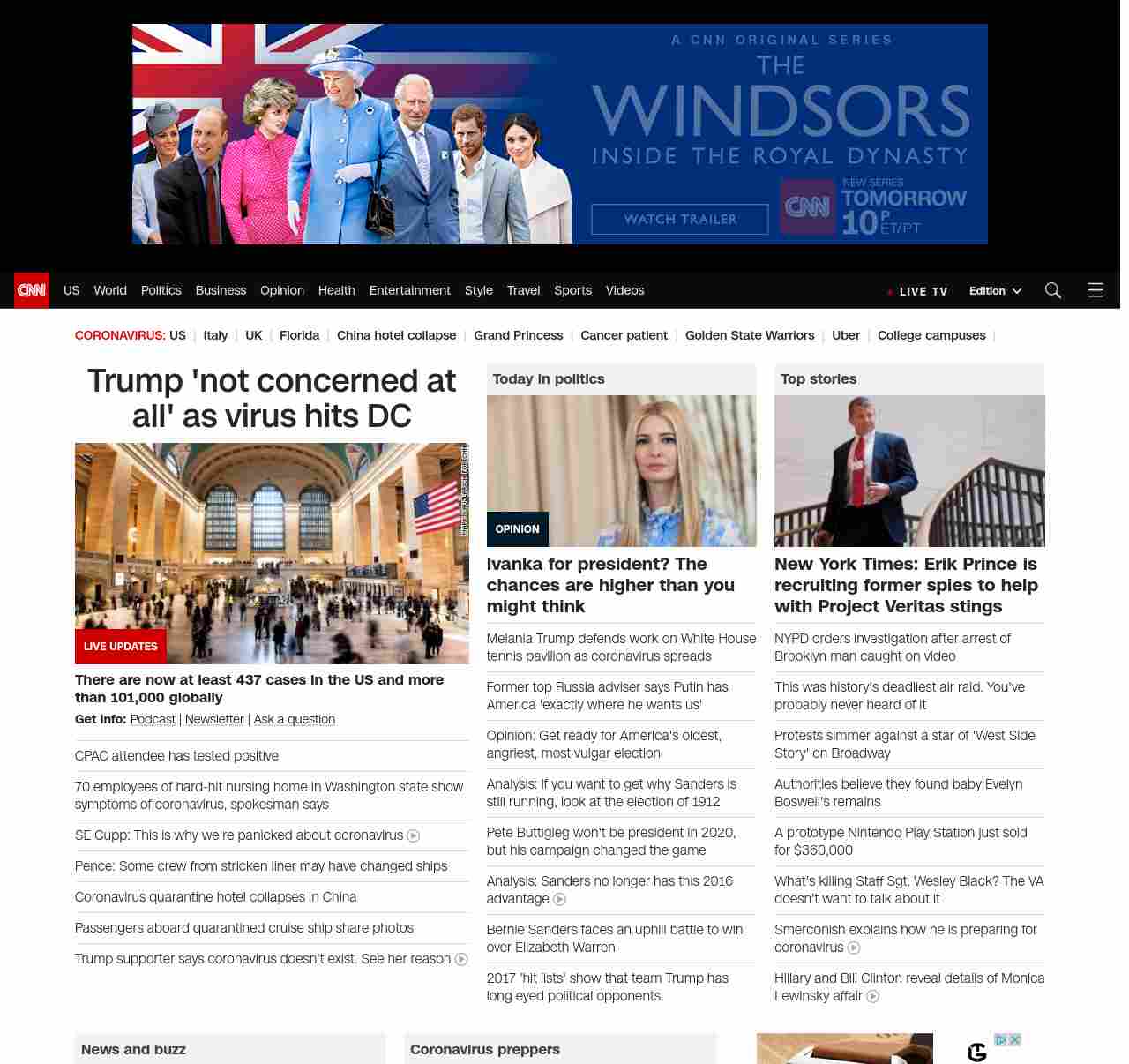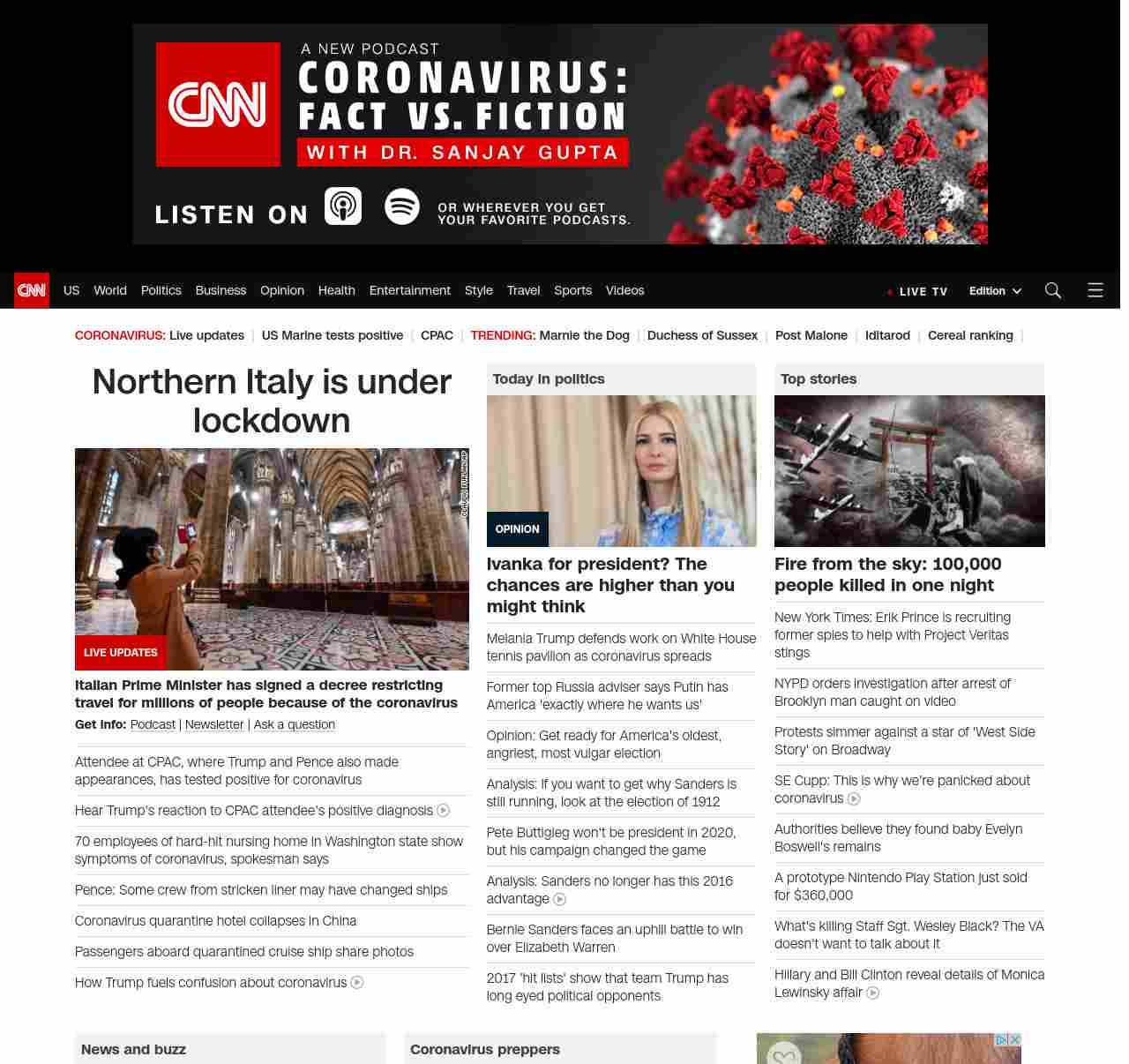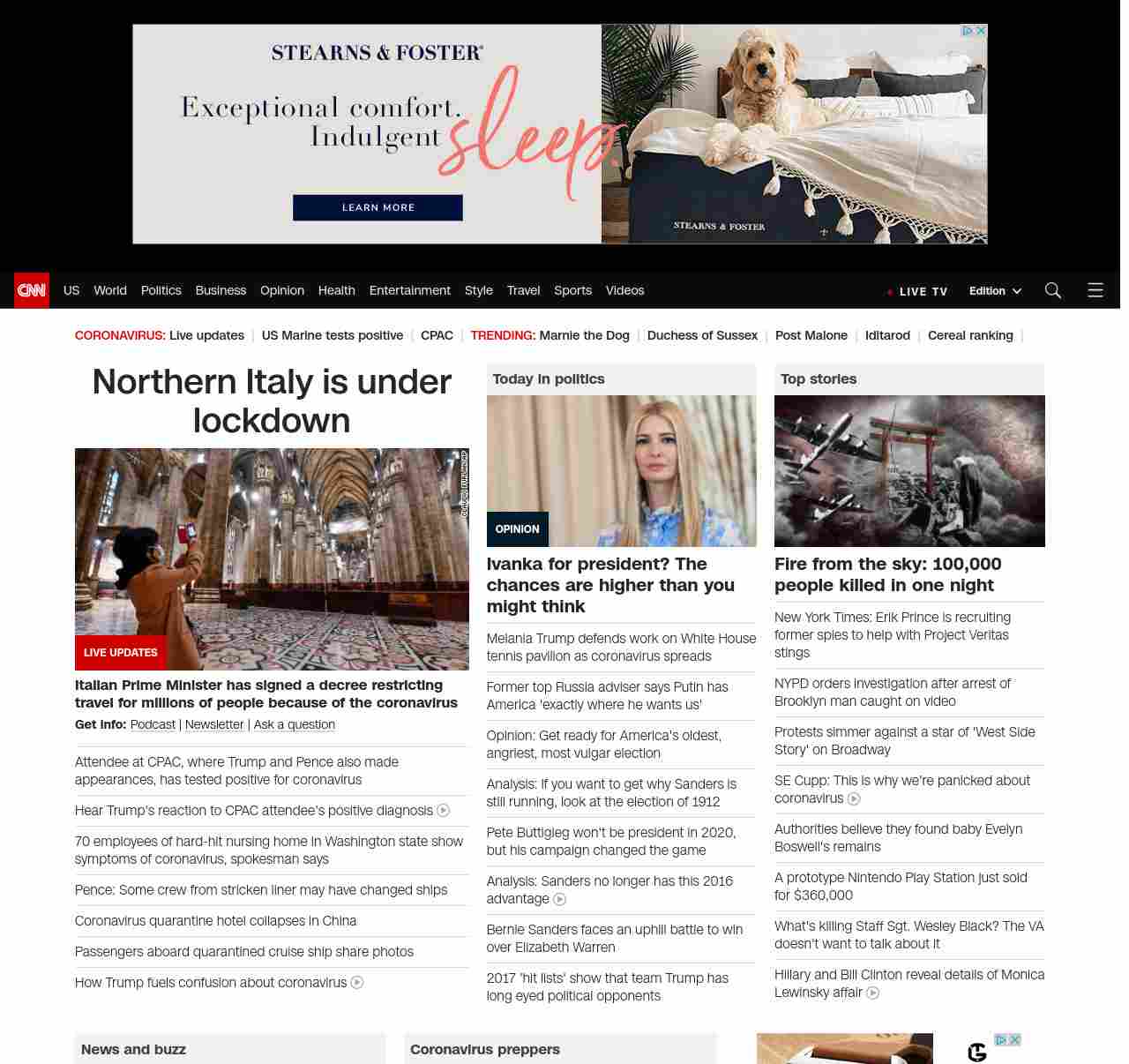 || screaming-banner-text banner-text-size–char-38″ data-analytics=”_list-hierarchical-xs_hyperlink_”> Coronavirus cases logged in 30 states ||” , title: “CNN – Breaking News, Latest News and Videos” , siblings: {“articleList”:[{“uri”:”/2020/03/07/politics/cpac-coronavirus-tested-positive/index.html”,”headline”:”Attendee at CPAC, where Trump and Pence also made appearances, has tested positive for coronavirus”,”thumbnail”:”//cdn.cnn.com/cnnnext/dam/assets/200305221748-cpac-sign-small-11.jpg”,”duration”:””,”description”:”The u003ca href=”https://www.conservative.org/” target=”_blank”>American Conservative Unionu003c/a> announced on Saturday that one of the attendees at last week’s u003ca href=”https://www.cnn.com/2020/02/29/politics/donald-trump-cpac-2020/index.html” target=”_blank”>Conservative Political Action Conferenceu003c/a> in National Harbor, Maryland, has tested u003ca href=”https://www.cnn.com/asia/live-news/coronavirus-outbreak-03-07-20-intl-hnk/h_583af80467602a31f57568c42dfc6c00″ target=”_blank”>positive for coronavirus.u003c/a>”,”layout”:””
