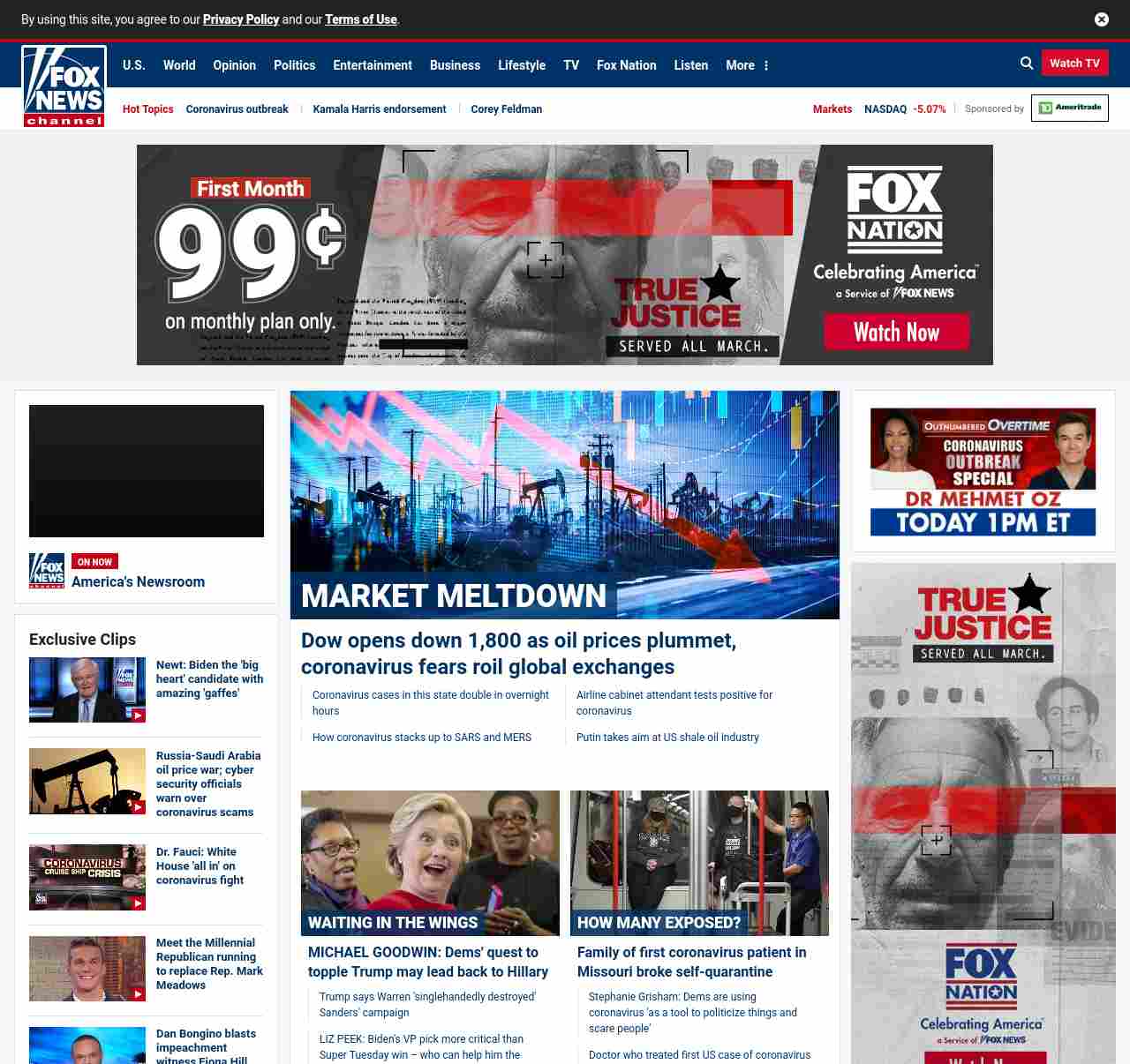 =”https://www.foxbusiness.com/markets/us-markets-march-9-2020“>Dow opens down 1,800 as oil prices plummet, coronavirus fears roil global exchanges