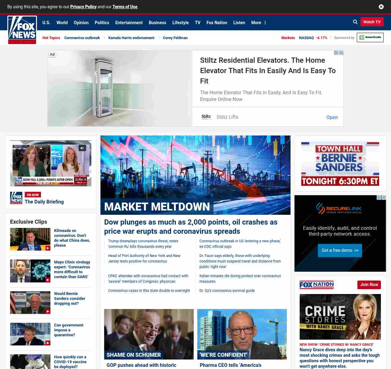 =”https://www.foxbusiness.com/markets/us-markets-march-9-2020“>Dow plunges as much as 2,000 points, oil crashes as price war erupts and coronavirus spreads