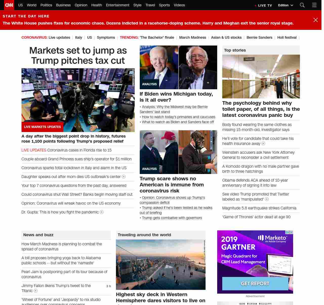 || screaming-banner-text banner-text-size–char-47″ data-analytics=”_list-hierarchical-xs_article_”> Markets set to jump as Trump pitches tax cut ||” , title: “CNN – Breaking News, Latest News and Videos” , siblings: {“articleList”:[{“uri”:”/business/live-news/stock-market-news-today-031020/index.html”,”headline”:”u003cstrong>A day after the biggest point drop in history, futures rose 1,100 points following Trump’s proposed reliefu003c/strong>”,”thumbnail”:”//cdn.cnn.com/cnnnext/dam/assets/200309153633-25-stock-market-0309-new-york-small-11.jpg”,”duration”:””,”description”:””,”layout”:””