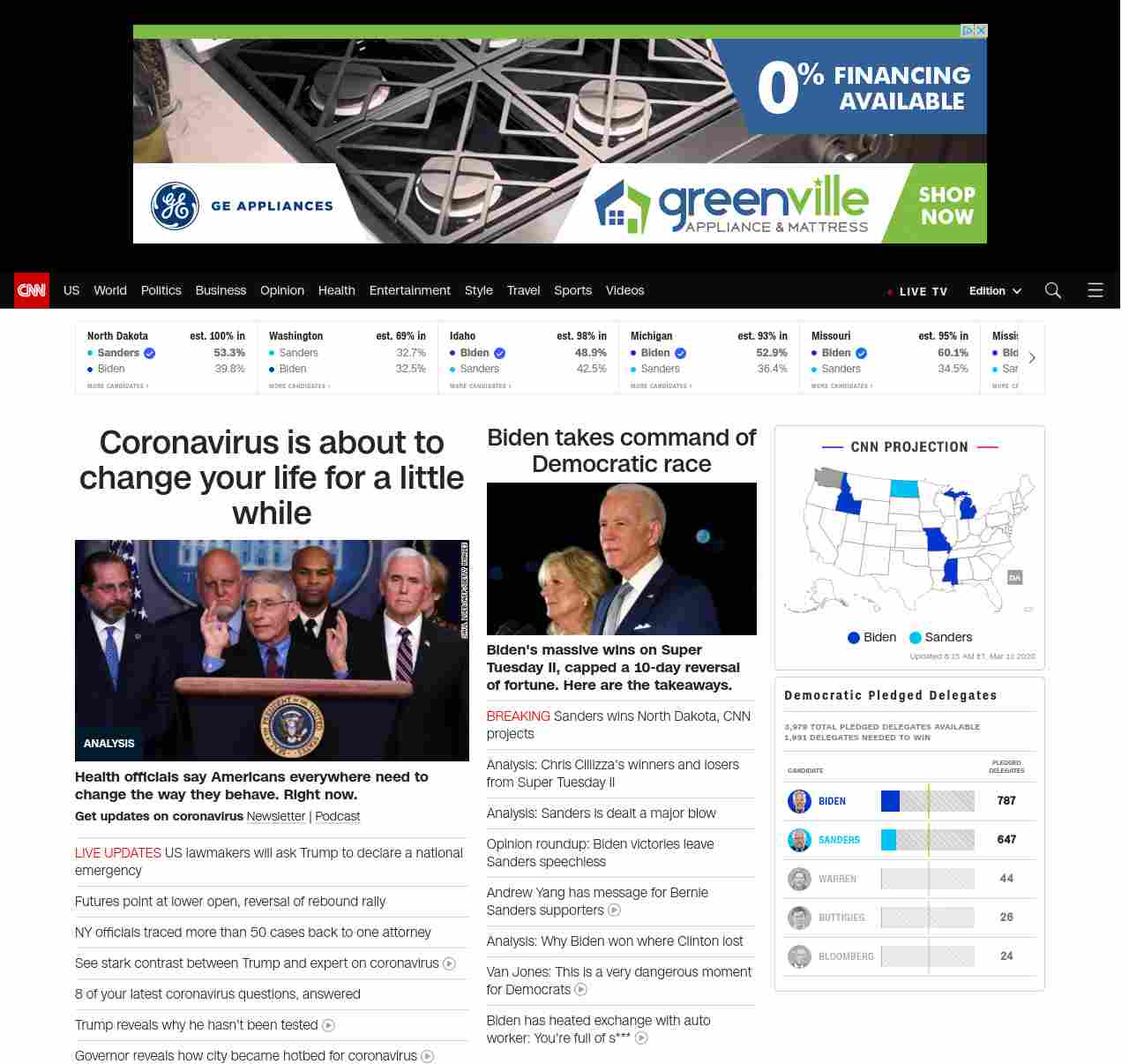 || screaming-banner-text banner-text-size–char-47″ data-analytics=”_list-hierarchical-xs_article_”> Coronavirus is about to change your life for a little while ||” , title: “CNN – Breaking News, Latest News and Videos” , siblings: {“articleList”:[{“uri”:”/2020/03/11/politics/what-matters-coronavirus-is-about-to-change-your-life/index.html”,”headline”:”u003cstrong>Health officials say Americans everywhere need to change the way they behave. Right now.u003c/strong>”,”thumbnail”:”//cdn.cnn.com/cnnnext/dam/assets/200311095901-anthony-fauci-0309-small-11.jpg”,”duration”:””,”description”:”u003cstrong>Get updates on coronavirusu003c/strong> u003ca href=”https://www.cnn.com/specials/coronavirus-newsletter?utm_source=hp&source=hp” target=”_blank”>Newsletteru003c/a> | u003ca href=”https://www.cnn.com/audio/podcasts/corona-virus” target=”_blank”>Podcastu003c/a> “,”layout”:””