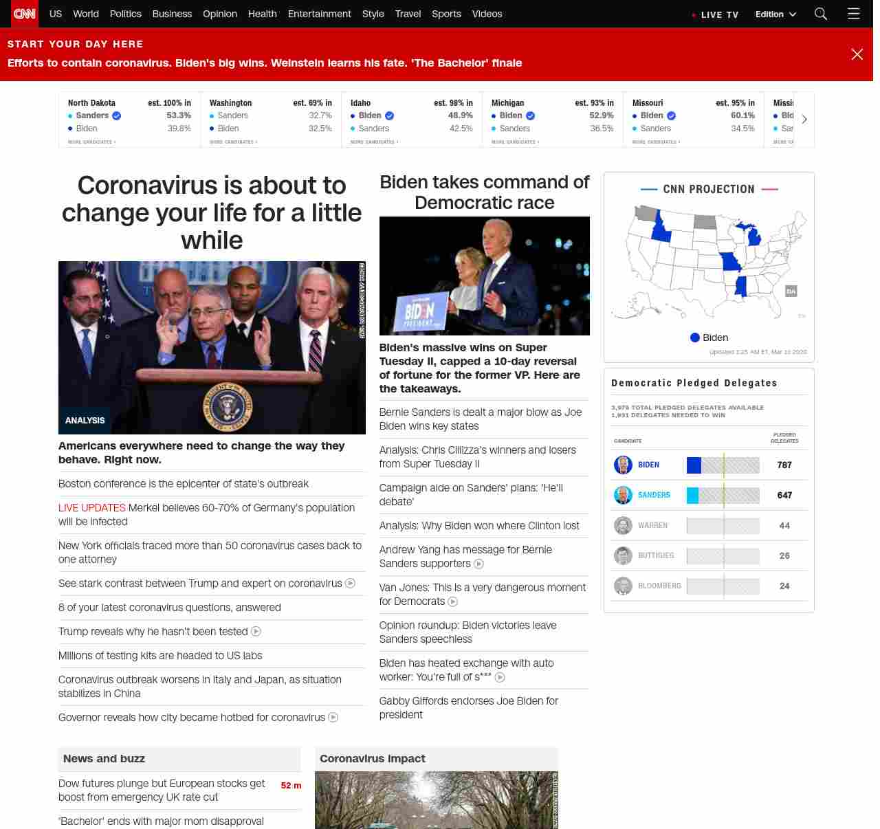 || banner-text–maximized banner-text-size–char-41″> Biden takes command of Democratic race ||” , title: “CNN – Breaking News, Latest News and Videos” , siblings: {“articleList”:[{“uri”:”/2020/03/11/politics/what-matters-coronavirus-is-about-to-change-your-life/index.html”,”headline”:”u003cstrong>Americans everywhere need to change the way they behave. Right now.u003c/strong>”,”thumbnail”:”//cdn.cnn.com/cnnnext/dam/assets/200311095901-anthony-fauci-0309-small-11.jpg”,”duration”:””,”description”:””,”layout”:””