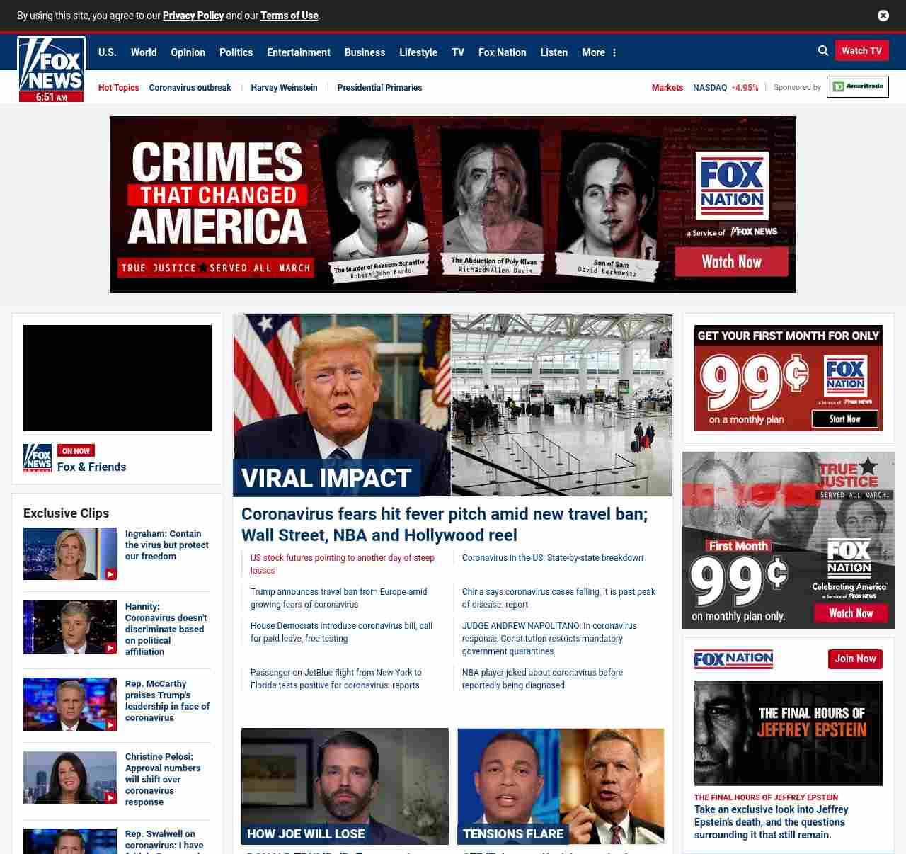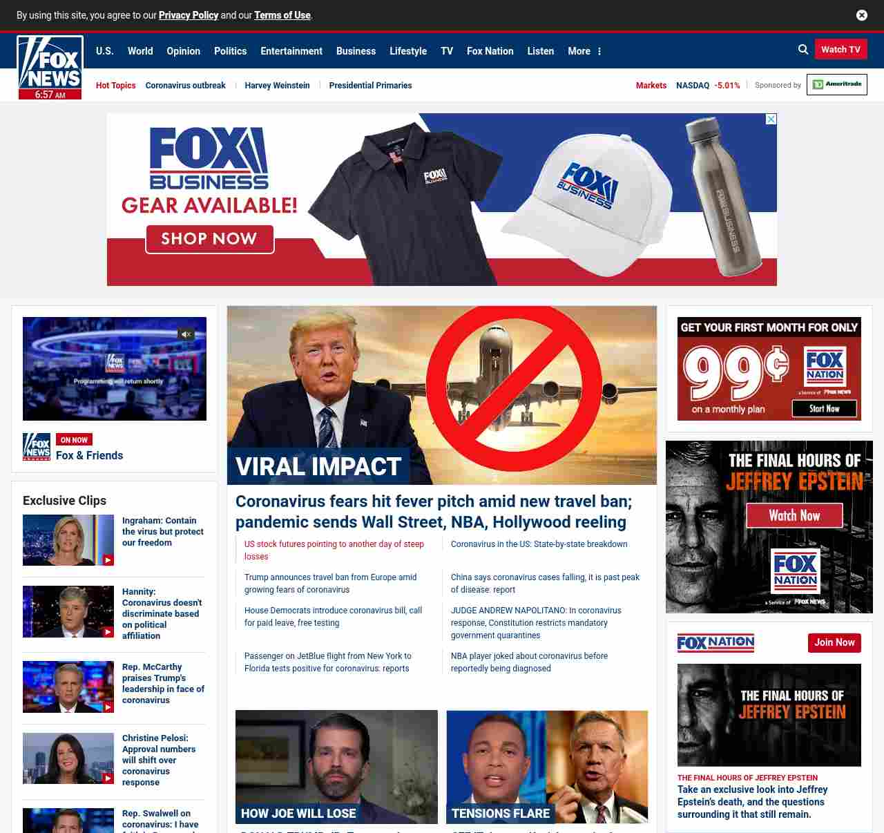 FN: [[VIRAL IMPACT]] Coronavirus fears hit fever pitch amid new travel ban; pandemic sends Wall Street, NBA, Hollywood reeling ((lubuntu at wor3))