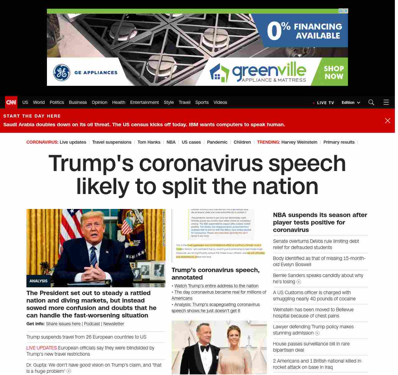 CNN1: FOXVCNN=|banner-text–natural”> Trump’s coronavirus speech likely to split the nation| ((lubuntu at wor3))