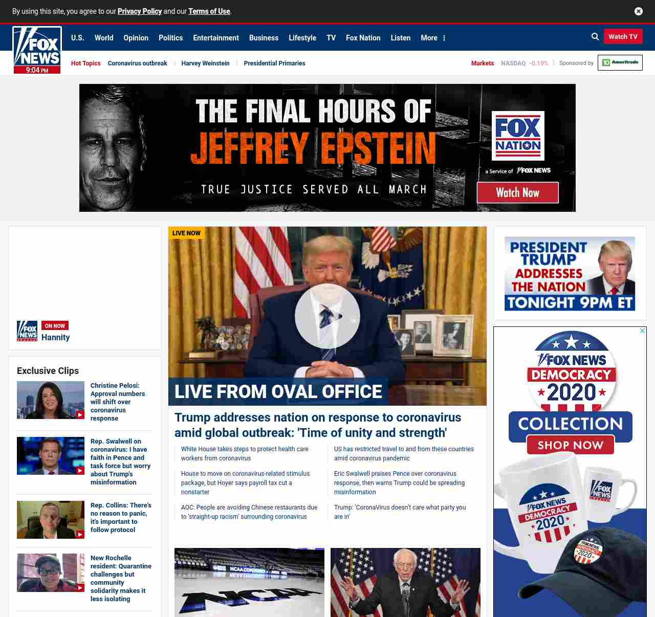 FN: [[LIVE FROM OVAL OFFICE]] Trump addresses nation on response to coronavirus amid global outbreak: ' Time of unity and strength' ((lubuntu at wor3))