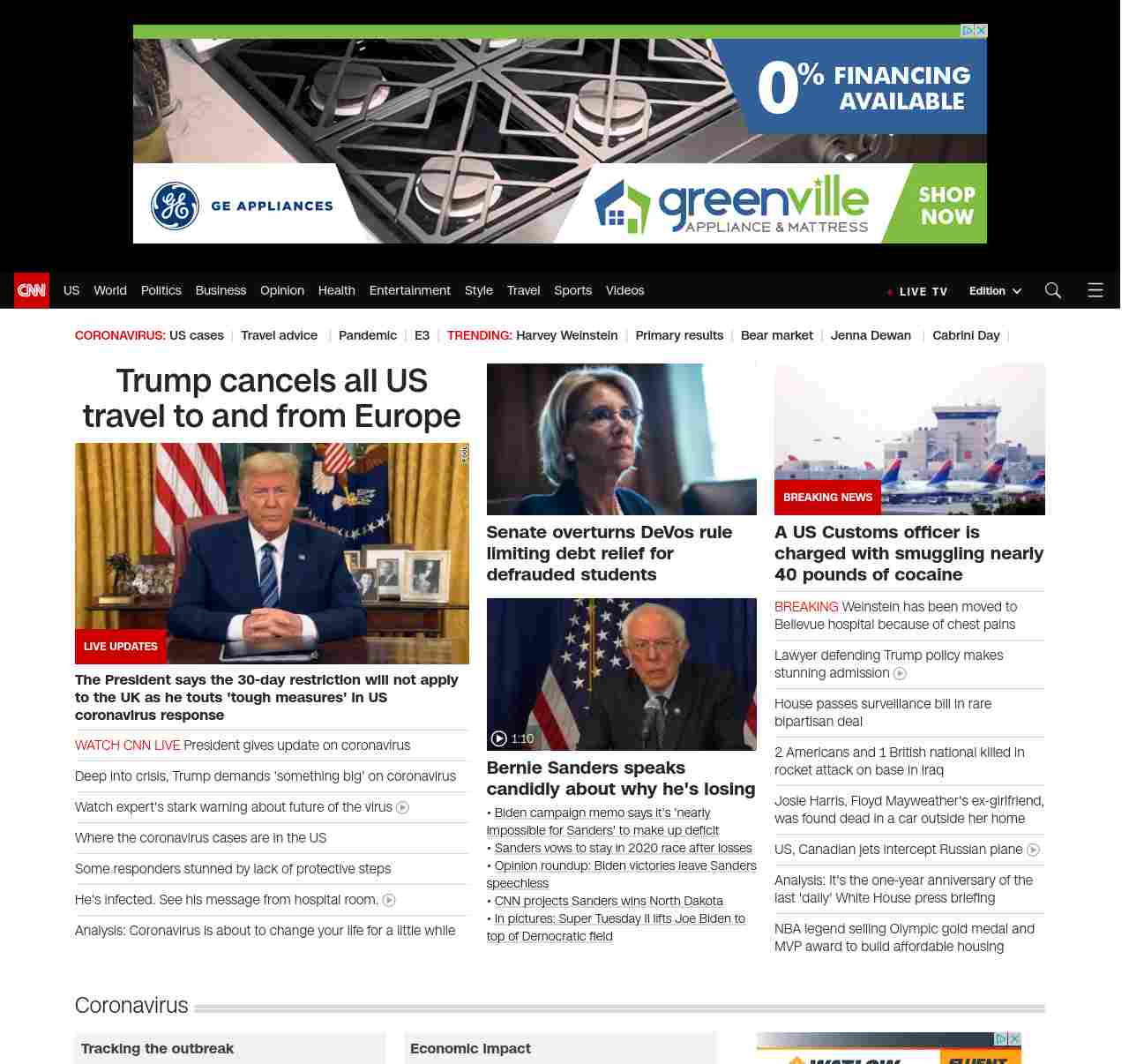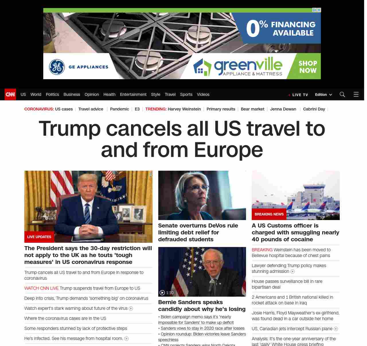 || screaming-banner-text banner-text-size–char-47″ data-analytics=”_list-hierarchical-xs_hyperlink_”> Trump cancels all US travel to and from Europe ||” , title: “CNN – Breaking News, Latest News and Videos” , siblings: {“articleList”:[{“uri”:”/2020/03/11/politics/donald-trump-coronavirus-economy-health/index.html”,”headline”:”Deep into crisis, Trump demands ‘something big’ on coronavirus”,”thumbnail”:”//cdn.cnn.com/cnnnext/dam/assets/180601132510-01-trump-oval-office-file-2017-small-11.jpg”,”duration”:””,”description”:”Afteru003ca href=”https://www.cnn.com/2020/03/11/politics/fact-check-trump-administration-coronavirus-28-dishonest/index.html” target=”_blank”> months of minimizing a spreading crisisu003c/a>, it was only after a u003ca href=”http://www.cnn.com/2020/03/11/investing/us-stock-market-trump/index.html” target=”_blank”>stock market free-fallu003c/a> and u003ca href=”http://www.cnn.com/2020/03/09/politics/doug-collins-self-quarantine-cpac/index.html” target=”_blank”>two of his closest congressional allies quarantined themselvesu003c/a> that u003ca href=”https://www.cnn.com/election/2020/candidate/trump” target=”_blank”>President Donald Trumpu003c/a> instructed his top advisers to prepare dramatic action.”,”layout”:””