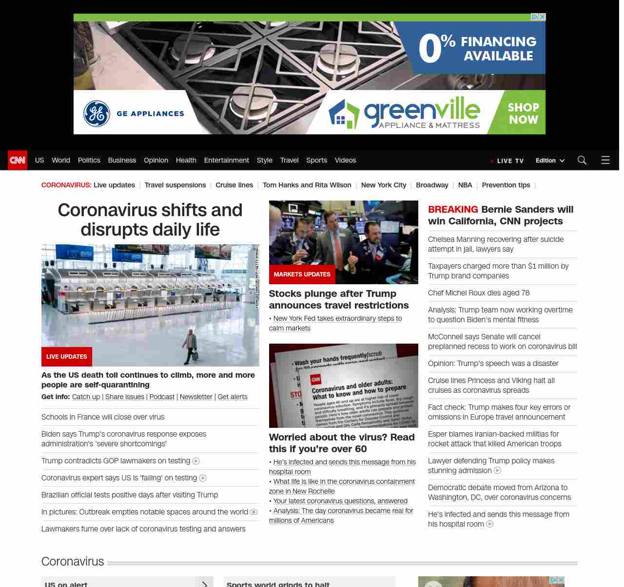 || screaming-banner-text banner-text-size–char-44″ data-analytics=”_list-hierarchical-xs_hyperlink_”> Coronavirus shifts and disrupts daily life ||” , title: “CNN – Breaking News, Latest News and Videos” , siblings: {“articleList”:[{“uri”:”/2020/03/12/politics/biden-coronavirus-trump/index.html”,”headline”:”Biden says Trump’s coronavirus response exposes administration’s ‘severe shortcomings'”,”thumbnail”:”//cdn.cnn.com/cnnnext/dam/assets/200312133019-01-joe-biden-coronavirus-0312-small-11.jpg”,”duration”:””,”description”:”u003ca href=”https://www.cnn.com/election/2020/candidate/biden” target=”_blank”>Joe Bidenu003c/a> in a speech on Thursday lambasted u003ca href=”https://www.cnn.com/2020/03/12/politics/donald-trump-coronavirus-europe-travel/index.html” target=”_blank”>President Donald Trump’s handling of the coronavirus pandemicu003c/a>, saying it has “laid bare the severe shortcomings of the current administration.” “,”layout”:””