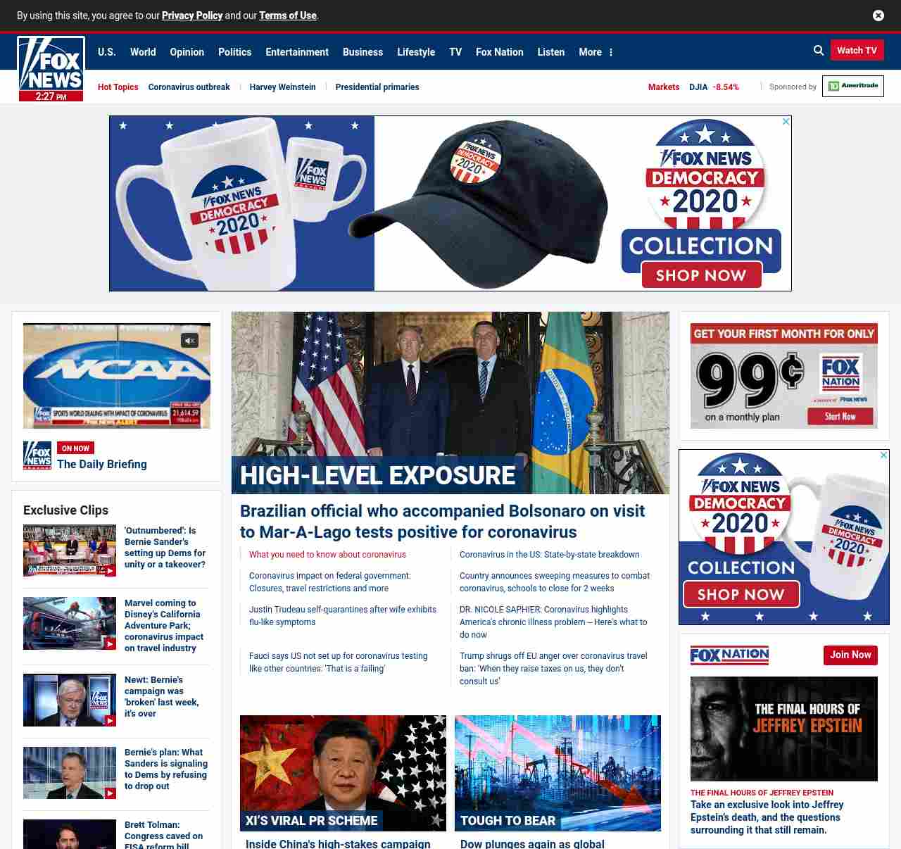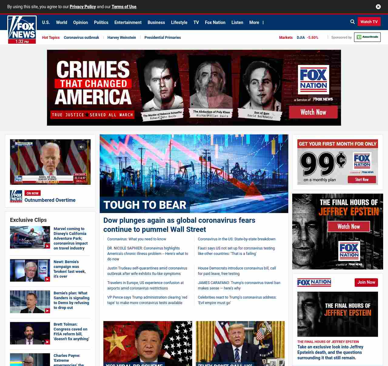 FN: [[TOUGH TO BEAR]] Dow plunges again as global coronavirus fears continue to pummel Wall Street ((lubuntu at wor3))