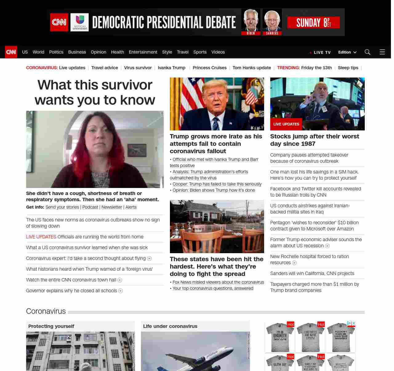 || banner-text–maximized banner-text-size–char-20″> America is on hold ||” , title: “CNN – Breaking News, Latest News and Videos” , siblings: {“articleList”:[{“uri”:”/2020/03/12/health/coronavirus-survivor-elizabeth-schneider/index.html”,”headline”:”u003cstrong>She didn’t have a cough, shortness of breath or respiratory symptoms. Then she had an ‘aha’ moment. u003c/strong>”,”thumbnail”:”//cdn.cnn.com/cnnnext/dam/assets/200312200703-elizabeth-schneider-small-11.jpg”,”duration”:””,”description”:”u003cstrong>Get info: u003c/strong>u003ca href=”https://www.cnn.com/2020/03/11/us/coronavirus-testing-stories-invs/index.html” target=”_blank”>Send your storiesu003c/a> | u003ca href=”https://www.cnn.com/audio/podcasts/corona-virus” target=”_blank”>Podcastu003c/a> | u003ca href=”https://www.cnn.com/specials/coronavirus-newsletter?utm_source=hp&source=hp” target=”_blank”>Newsletteru003c/a> | u003ca href=”https://www.cnn.com/specials/mobile-apps” target=”_blank”>Alertsu003c/a>”,”layout”:””