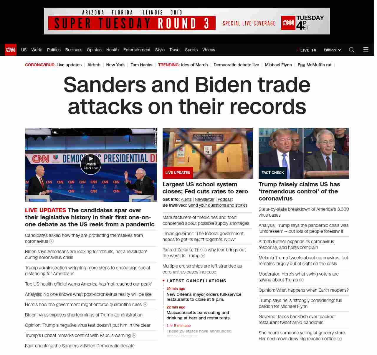 || banner-text–natural”> Sanders and Biden trade attacks on their records ||” , title: “CNN – Breaking News, Latest News and Videos” , siblings: {“articleList”:[{“uri”:”/politics/live-news/2020-democratic-debate-live-updates/index.html”,”headline”:”u003cstrong>The candidates spar over their legislative history in their first one-on-one debate as the US reels from a pandemicu003c/strong>”,”thumbnail”:”//cdn.cnn.com/cnnnext/dam/assets/200315210254-31-cnn-debate-0315-small-11.jpg”,”duration”:””,”description”:””,”layout”:””