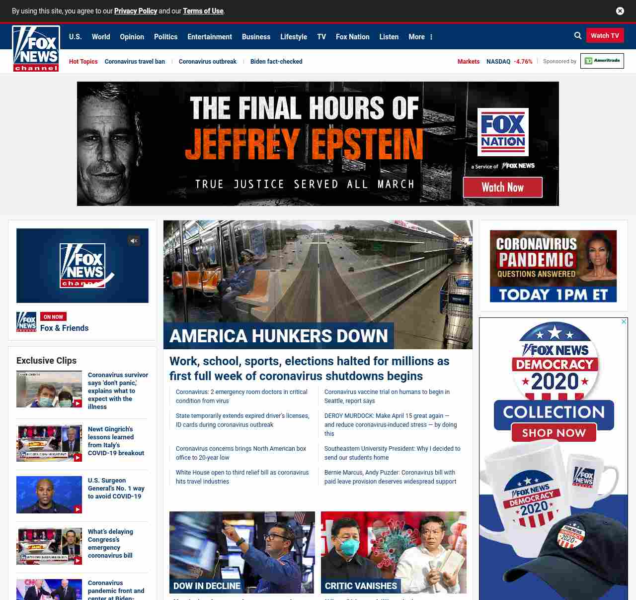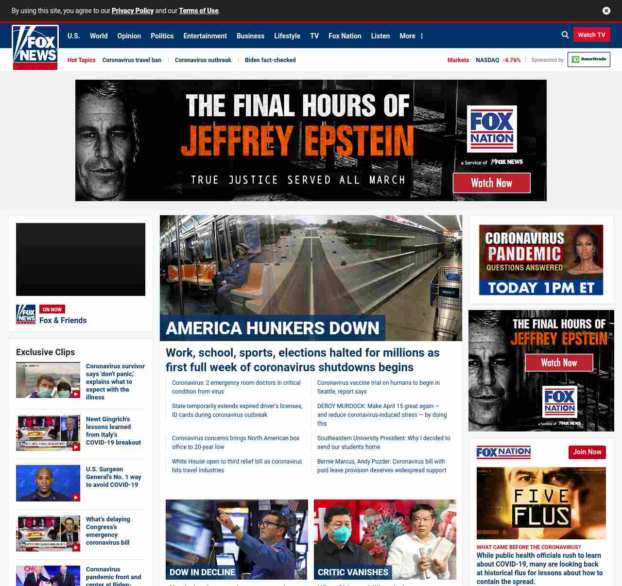 FN: [[AMERICA HUNKERS DOWN]] Work, school, sports, elections halted for millions as first full week of coronavirus shutdowns begins ((lubuntu at wor3))
