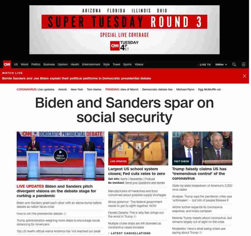 || banner-text–natural”> Biden and Sanders spar on social security ||” , title: “CNN – Breaking News, Latest News and Videos” , siblings: {“articleList”:[{“uri”:”/politics/live-news/2020-democratic-debate-live-updates/index.html”,”headline”:”u003cstrong>The candidates spar over their legislative history during their first one-on-one debate as America reels from a pandemicu003c/strong>”,”thumbnail”:”//cdn.cnn.com/cnnnext/dam/assets/200315210008-30-cnn-debate-0315-small-11.jpg”,”duration”:””,”description”:””,”layout”:””