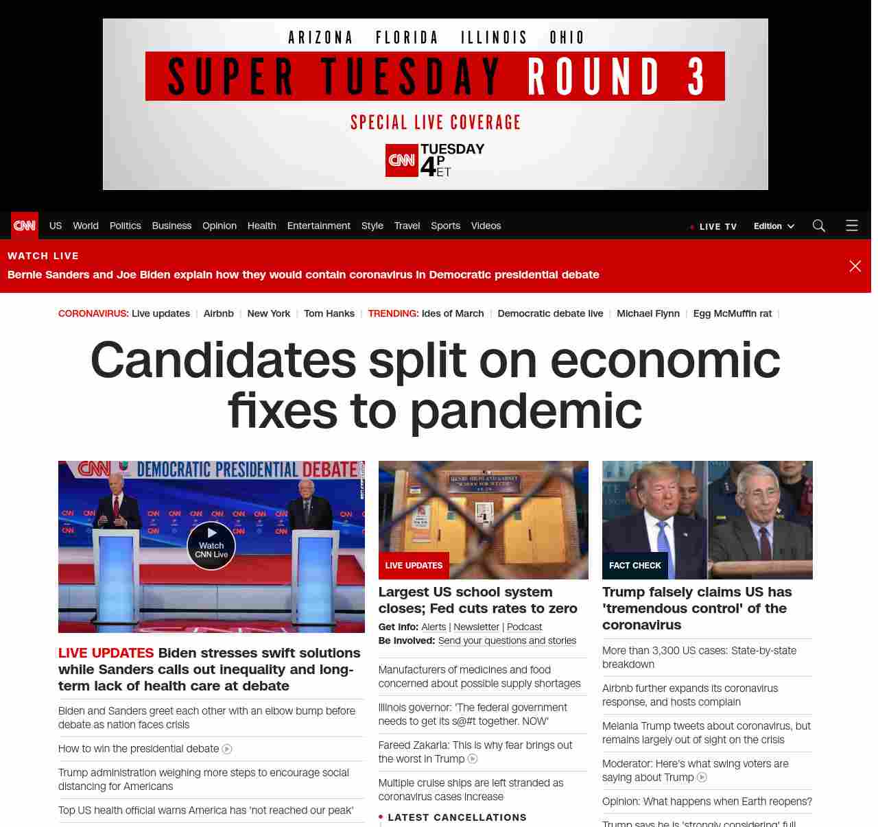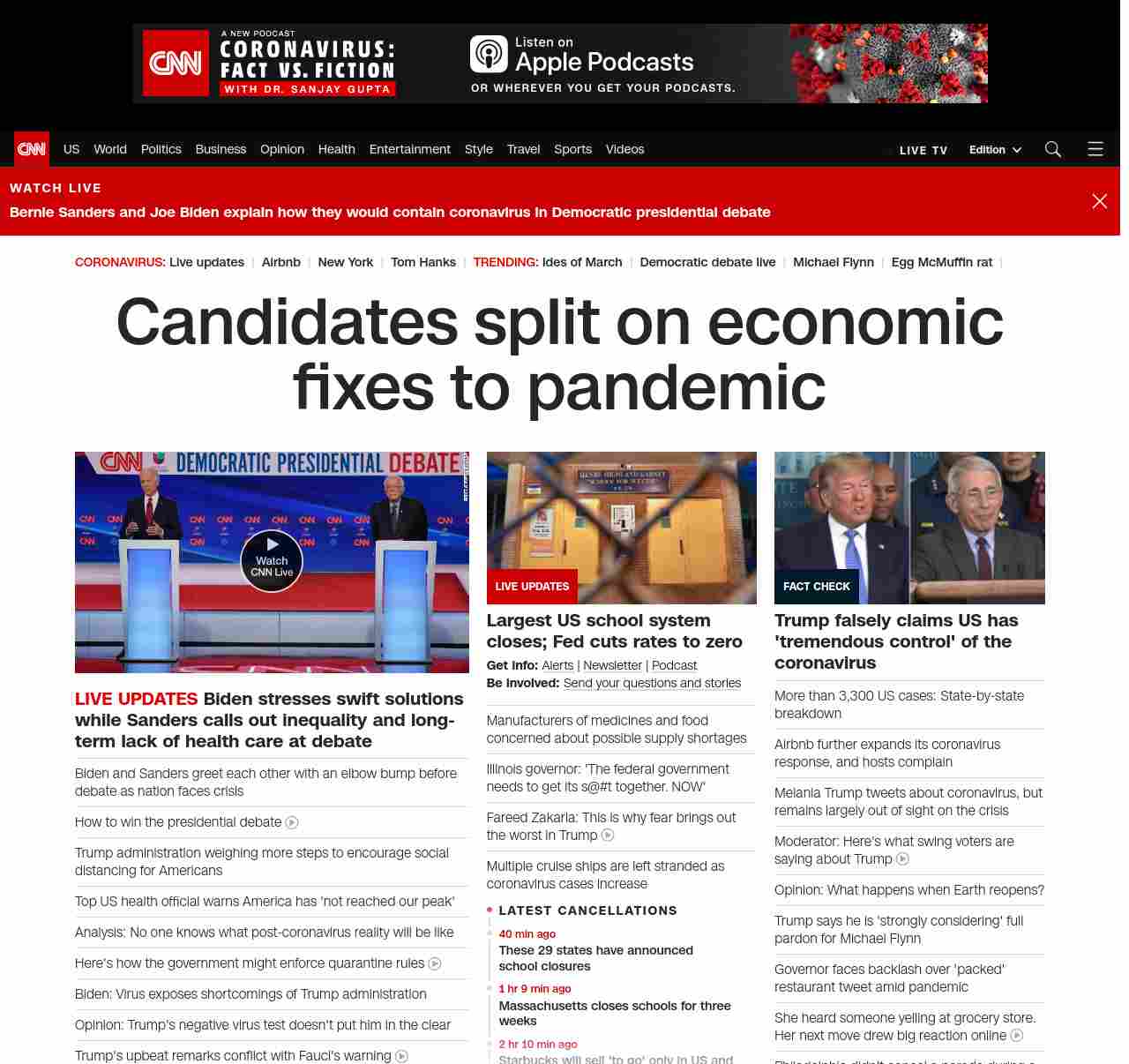 || banner-text–natural”> Candidates split on economic fixes to pandemic ||” , title: “CNN – Breaking News, Latest News and Videos” , siblings: {“articleList”:[{“uri”:”/politics/live-news/2020-democratic-debate-live-updates/index.html”,”headline”:”u003cstrong>Biden stresses swift solutions while Sanders calls out inequality and long-term lack of health care at debateu003c/strong>”,”thumbnail”:”//cdn.cnn.com/cnnnext/dam/assets/200315201827-16-cnn-debate-0315-small-11.jpg”,”duration”:””,”description”:””,”layout”:””