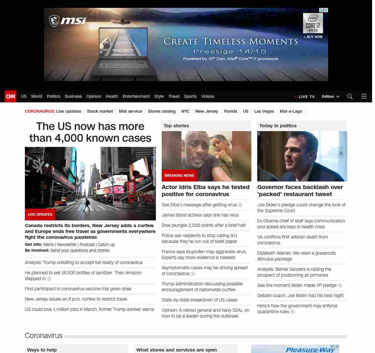 || screaming-banner-text banner-text-size–char-44″ data-analytics=”_list-hierarchical-xs_hyperlink_”> The US now has more than 4,000 known cases ||” , title: “CNN – Breaking News, Latest News and Videos” , siblings: {“articleList”:[{“uri”:”/2020/03/16/europe/spain-coronavirus-lockdown-intl/index.html”,”headline”:”EU, home of borderless travel, to shut borders”,”thumbnail”:”//cdn.cnn.com/cnnnext/dam/assets/200316105611-01-coronavirus-spain-lockdown-0315-small-11.jpg”,”duration”:””,”description”:”The European Union will close its borders to all non-essential travel as it attempts to contain the u003ca href=”https://cnn.com/world/live-news/coronavirus-outbreak-03-16-20-intl-hnk/index.html” target=”_blank”>ongoing spread of the coronavirusu003c/a> on the continent.”,”layout”:””