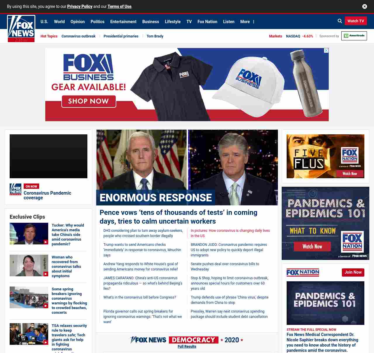 =”https://www.foxnews.com/media/mike-pence-coronavirus-response-thousands-tests“>Pence vows ‘tens of thousands of tests’ in coming days, tries to calm uncertain workers
