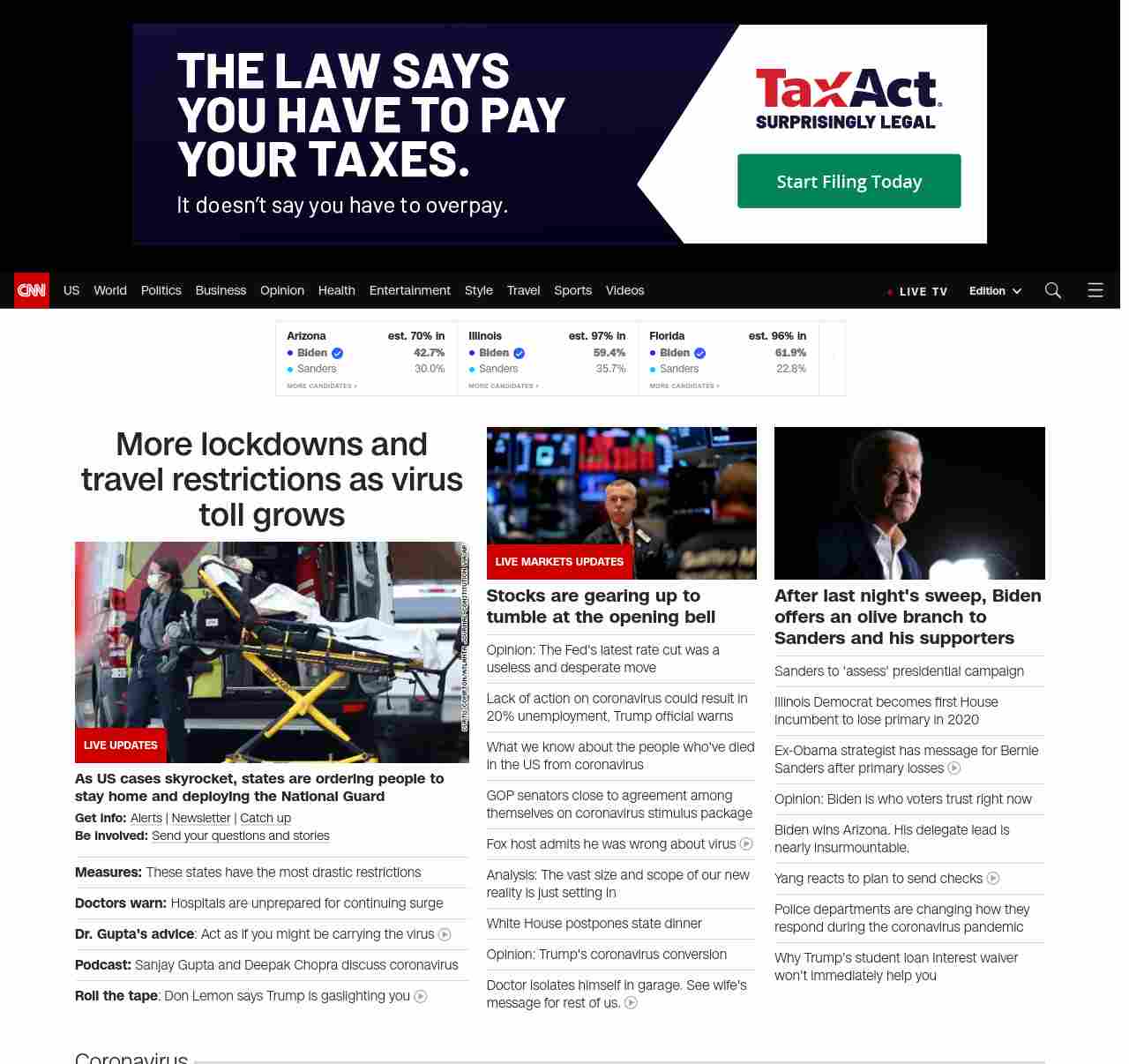 || screaming-banner-text banner-text-size–char-47″ data-analytics=”_list-hierarchical-xs_article_”> More lockdowns and travel restrictions as virus toll grows ||” , title: “CNN – Breaking News, Latest News and Videos” , siblings: {“articleList”:[{“uri”:”/2020/03/18/health/us-coronavirus-case-updates-wednesday/index.html”,”headline”:”u003cstrong>Doctors warn: u003c/strong>Hospitals are unprepared for continuing surge”,”thumbnail”:”//cdn.cnn.com/cnnnext/dam/assets/200318030645-01-coronavirus-virginia-0316-small-11.jpg”,”duration”:””,”description”:””,”layout”:””