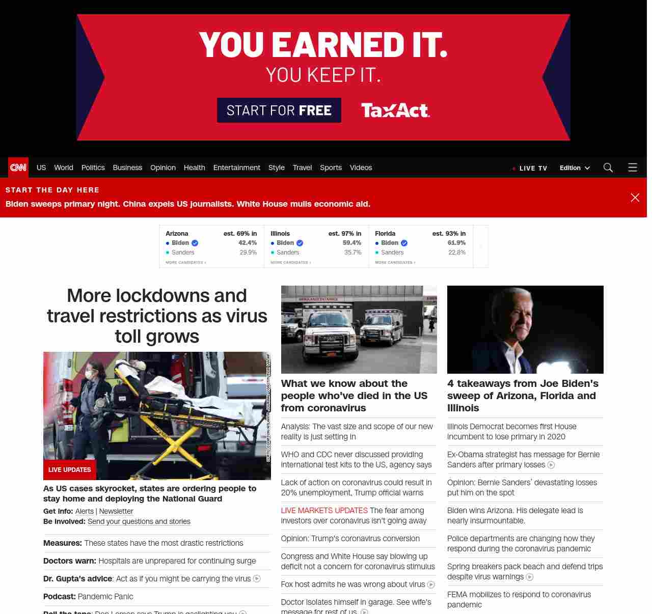 || screaming-banner-text banner-text-size–char-47″ data-analytics=”_list-hierarchical-xs_article_”> More lockdowns and travel restrictions as virus toll grows ||” , title: “CNN – Breaking News, Latest News and Videos” , siblings: {“articleList”:[{“uri”:”/world/live-news/coronavirus-outbreak-03-18-20-intl-hnk/index.html”,”headline”:”u003cstrong>As US cases skyrocket, states are ordering people to stay home and deploying the National Guardu003c/strong>”,”thumbnail”:”//cdn.cnn.com/cnnnext/dam/assets/200318030835-01-coronavirus-georgia-0316-small-11.jpg”,”duration”:””,”description”:”u003cstrong>Get info: u003c/strong>u003ca href=”https://www.cnn.com/specials/mobile-apps” target=”_blank”>Alertsu003c/a> | u003ca href=”https://www.cnn.com/specials/coronavirus-newsletter?utm_source=hp&source=hp” target=”_blank”>Newsletteru003c/a> u003cbr />u003cstrong>Be involved: u003c/strong>u003ca href=”https://www.cnn.com/2020/03/11/us/coronavirus-testing-stories-invs/index.html” target=”_blank”>Send your questions and storiesu003c/a>”,”layout”:””