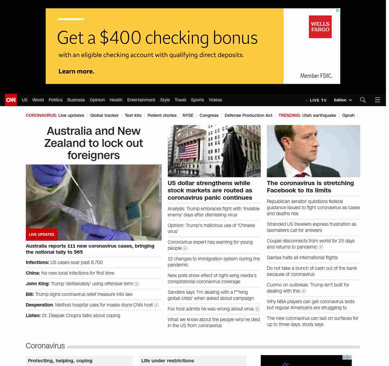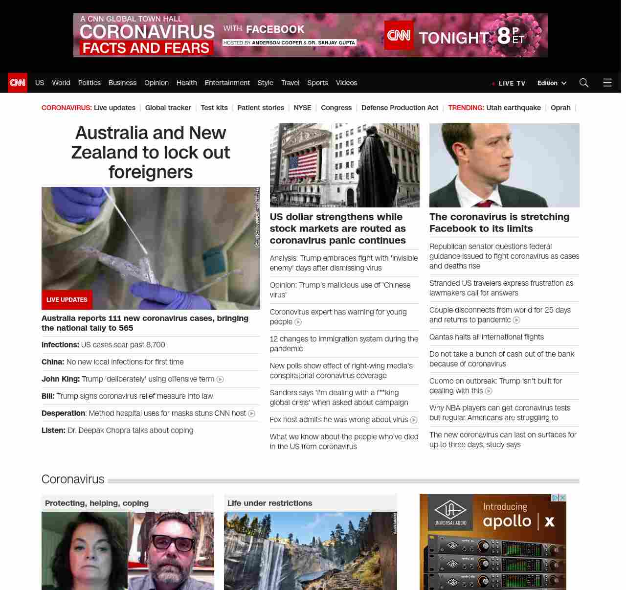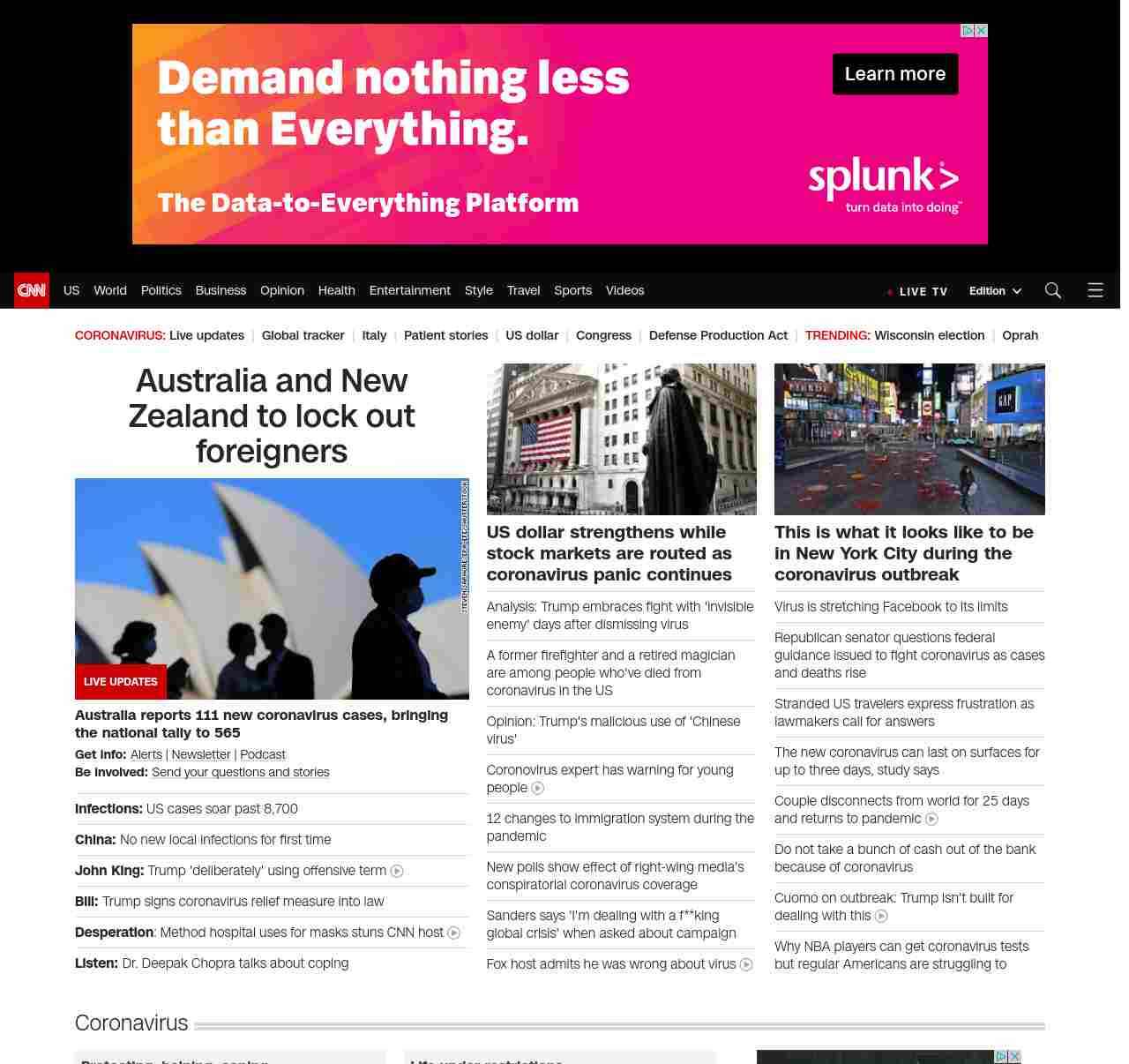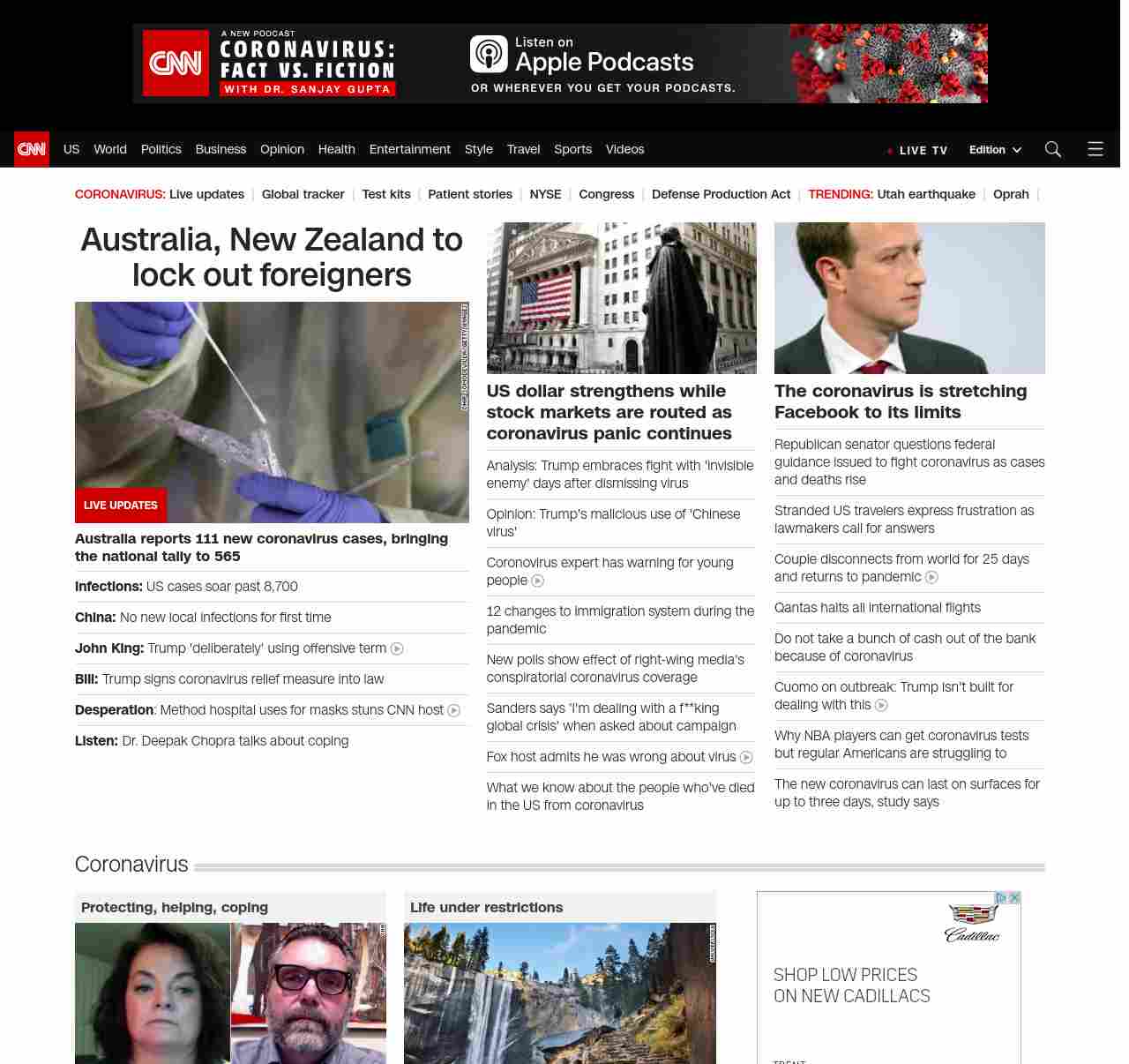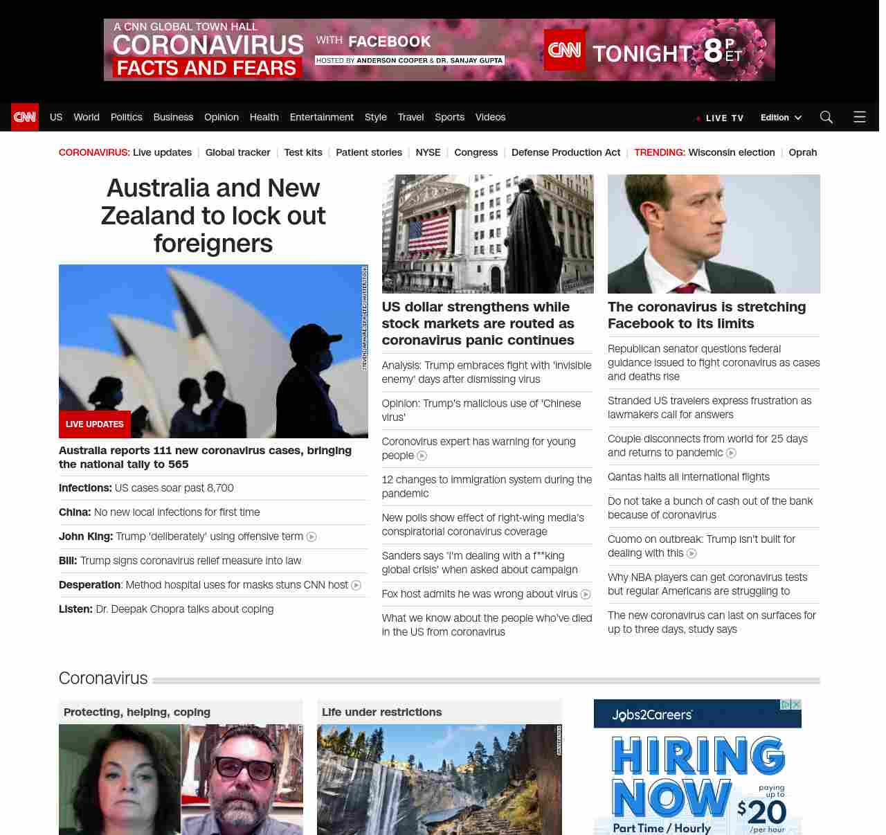 || screaming-banner-text banner-text-size–char-47″ data-analytics=”_list-hierarchical-xs_article_”> Australia and New Zealand to lock out foreigners ||” , title: “CNN – Breaking News, Latest News and Videos” , siblings: {“articleList”:[{“uri”:”/2020/03/19/health/us-coronavirus-case-updates-thursday/index.html”,”headline”:”u003cstrong>Nearly two months since the first US coronavirus case, the government is now preparing for the pandemic to last up to 18 months or longer, a report saysu003c/strong>”,”thumbnail”:”//cdn.cnn.com/cnnnext/dam/assets/200319023239-01-coronavirus-outbreak-0318-new-york-small-11.jpg”,”duration”:””,”description”:”u003cstrong>Get info: u003c/strong>u003ca href=”https://www.cnn.com/specials/mobile-apps” target=”_blank”>Alertsu003c/a> | u003ca href=”https://www.cnn.com/specials/coronavirus-newsletter?utm_source=hp&source=hp” target=”_blank”>Newsletteru003c/a> | u003ca href=”https://www.cnn.com/audio/podcasts/corona-virus”>Podcastu003c/a> u003cbr />u003cstrong>Be involved: u003c/strong>u003ca href=”https://www.cnn.com/2020/03/11/us/coronavirus-testing-stories-invs/index.html” target=”_blank”>Send your questions and storiesu003c/a>”,”layout”:””
