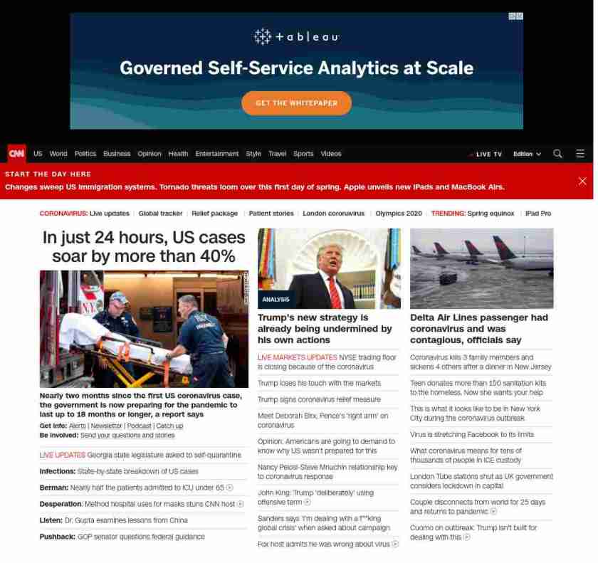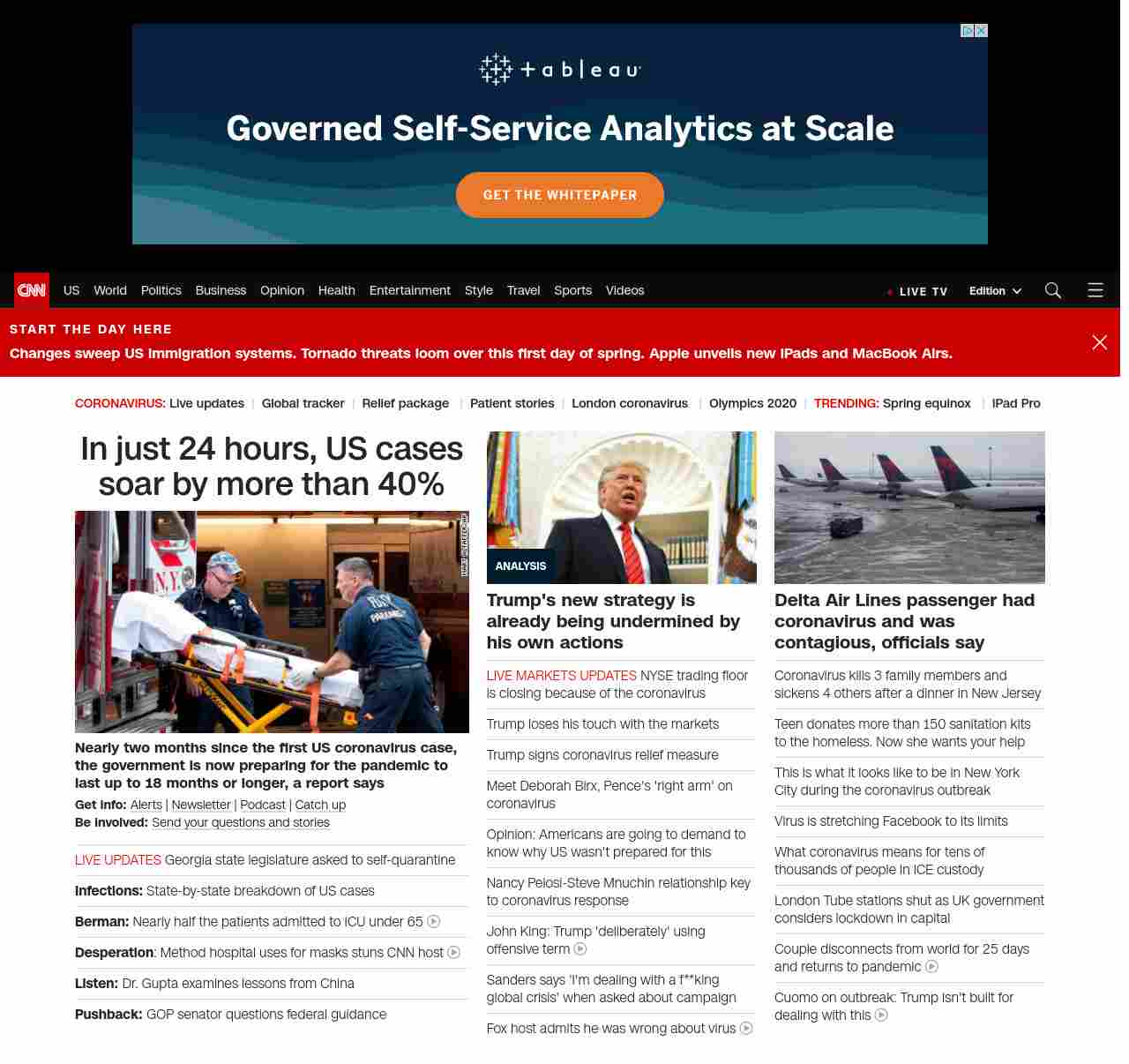 || screaming-banner-text banner-text-size–char-47″ data-analytics=”_list-hierarchical-xs_article_”> In just 24 hours, US cases soar by more than 40% ||” , title: “CNN – Breaking News, Latest News and Videos” , siblings: {“articleList”:[{“uri”:”/2020/03/19/health/us-coronavirus-case-updates-thursday/index.html”,”headline”:”u003cstrong>Nearly two months since the first US coronavirus case, the government is now preparing for the pandemic to last up to 18 months or longer, a report saysu003c/strong>”,”thumbnail”:”//cdn.cnn.com/cnnnext/dam/assets/200319023239-01-coronavirus-outbreak-0318-new-york-small-11.jpg”,”duration”:””,”description”:”u003cstrong>Get info: u003c/strong>u003ca href=”https://www.cnn.com/specials/mobile-apps” target=”_blank”>Alertsu003c/a> | u003ca href=”https://www.cnn.com/specials/coronavirus-newsletter?utm_source=hp&source=hp” target=”_blank”>Newsletteru003c/a> | u003ca href=”https://www.cnn.com/audio/podcasts/corona-virus”>Podcastu003c/a> | u003ca href=”https://www.cnn.com/2020/03/19/world/coronavirus-newsletter-03-19-20/index.html” target=”_blank”>Catch upu003c/a>u003cbr />u003cstrong>Be involved: u003c/strong>u003ca href=”https://www.cnn.com/2020/03/11/us/coronavirus-testing-stories-invs/index.html” target=”_blank”>Send your questions and storiesu003c/a>”,”layout”:””
