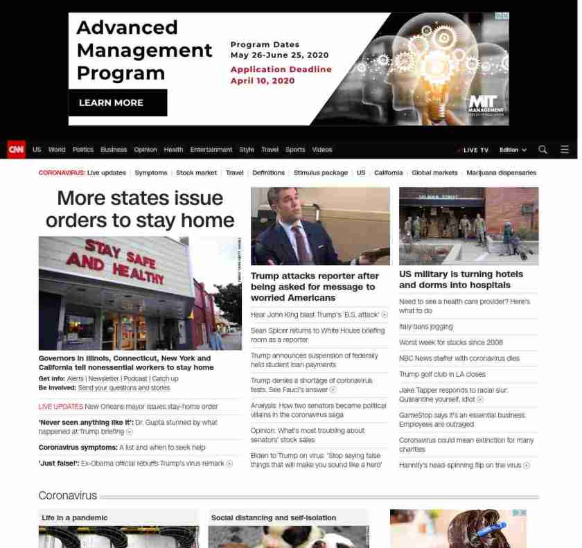 || screaming-banner-text banner-text-size–char-38″ data-analytics=”_list-hierarchical-xs_article_”> More states issue orders to stay home ||” , title: “CNN – Breaking News, Latest News and Videos” , siblings: {“articleList”:[{“uri”:”/2020/03/20/health/us-coronavirus-friday/index.html”,”headline”:”Governors in Illinois, Connecticut, New York and California tell nonessential workers to stay home”,”thumbnail”:”//cdn.cnn.com/cnnnext/dam/assets/200320032821-02-california-shutdown-0319-small-11.jpg”,”duration”:””,”description”:”u003cstrong>Get info: u003c/strong>u003ca href=”https://www.cnn.com/specials/mobile-apps” target=”_blank”>Alertsu003c/a> | u003ca href=”https://www.cnn.com/specials/coronavirus-newsletter?utm_source=hp&source=hp” target=”_blank”>Newsletteru003c/a> | u003ca href=”https://www.cnn.com/audio/podcasts/corona-virus”>Podcastu003c/a> | u003ca href=”https://www.cnn.com/2020/03/20/world/coronavirus-newsletter-03-20-20/index.html” target=”_blank”>Catch upu003c/a>u003cbr />u003cstrong>Be involved: u003c/strong>u003ca href=”http://www.cnn.com/2020/03/20/us/coronavirus-healthcare-worker-callout/index.html” target=”_blank”>Send your questions and storiesu003c/a>”,”layout”:””