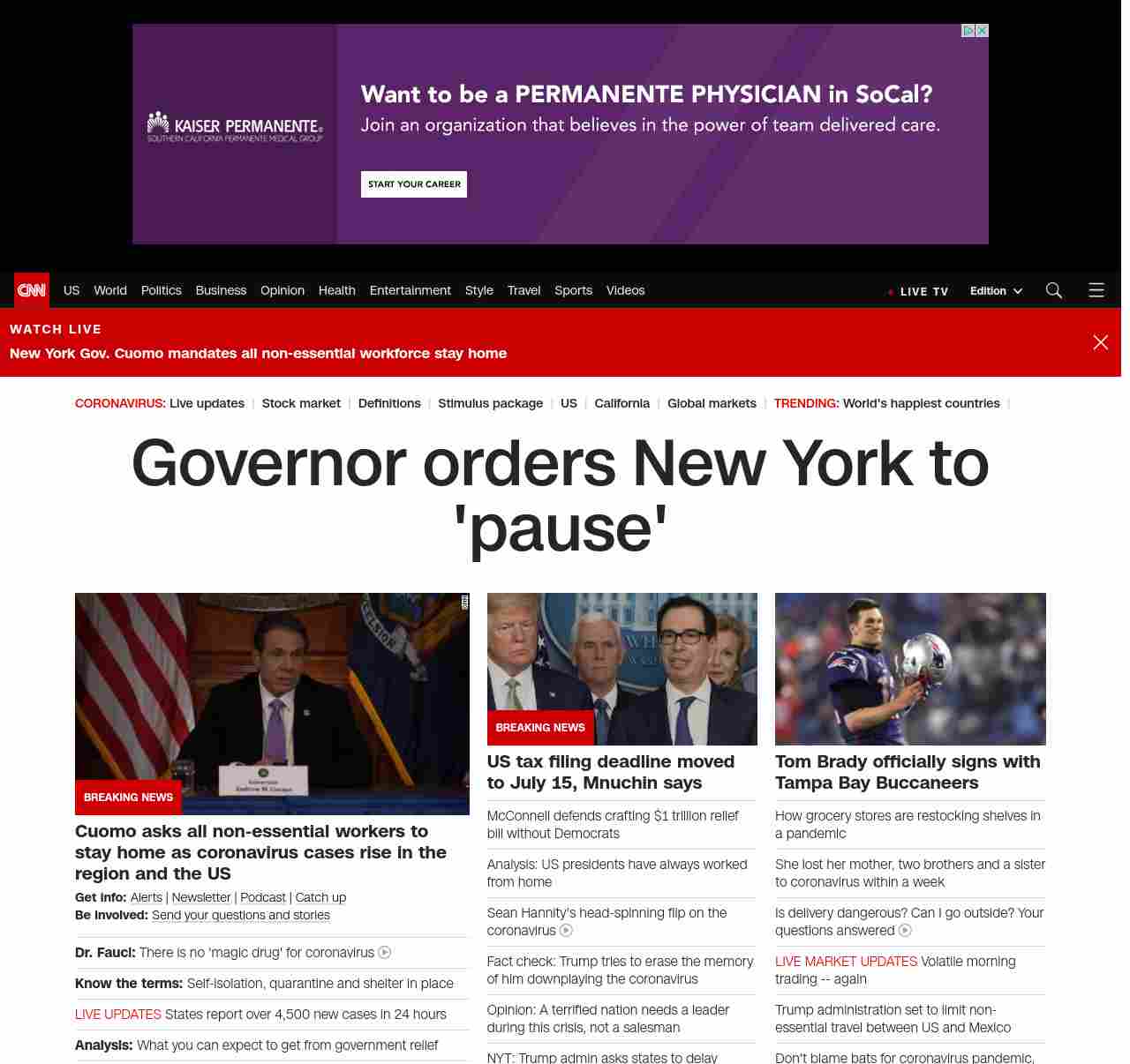 CNN1: FOXVCNN=|New York governor orders state to ‘pause’| ((lubuntu at wor3))