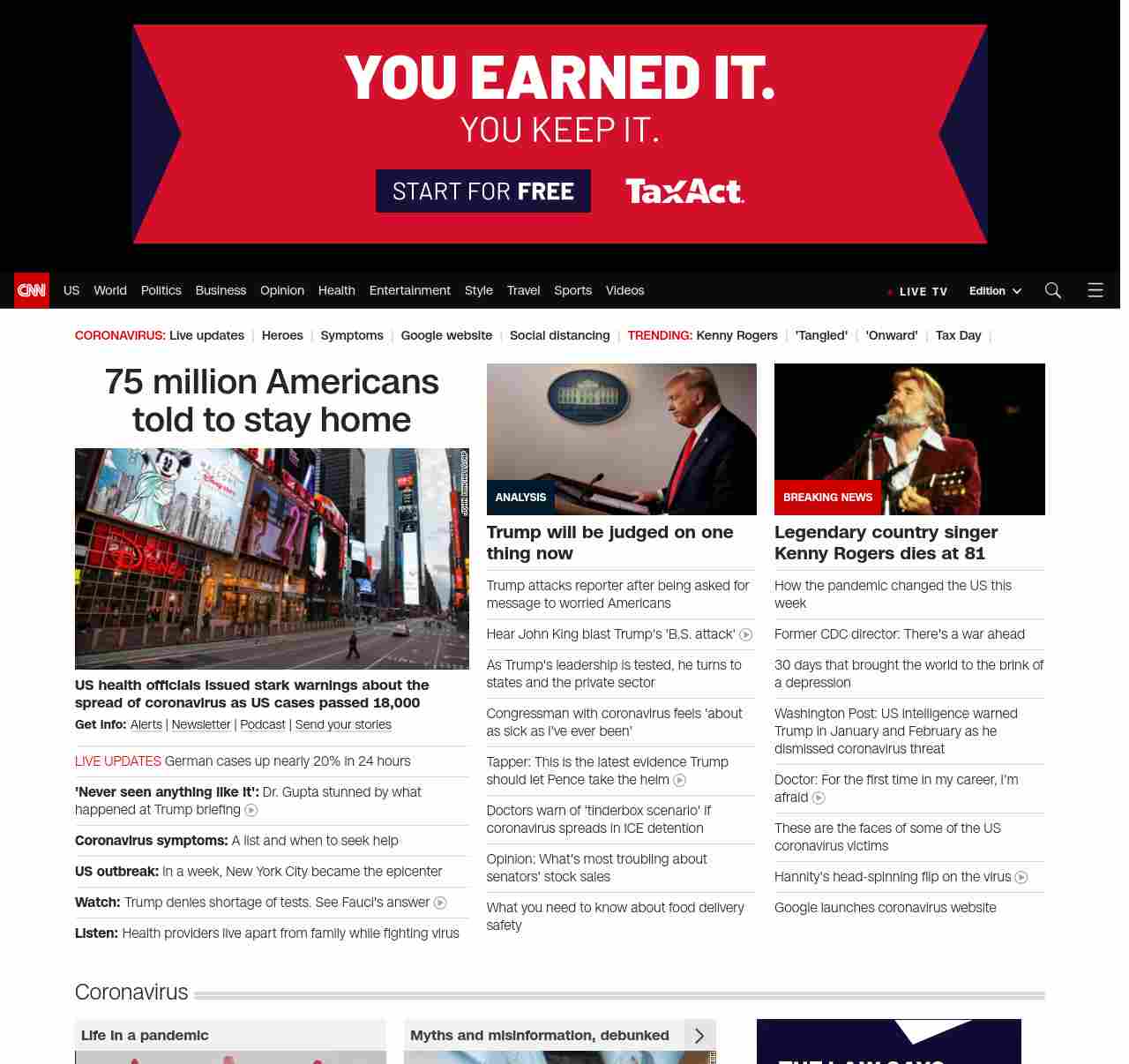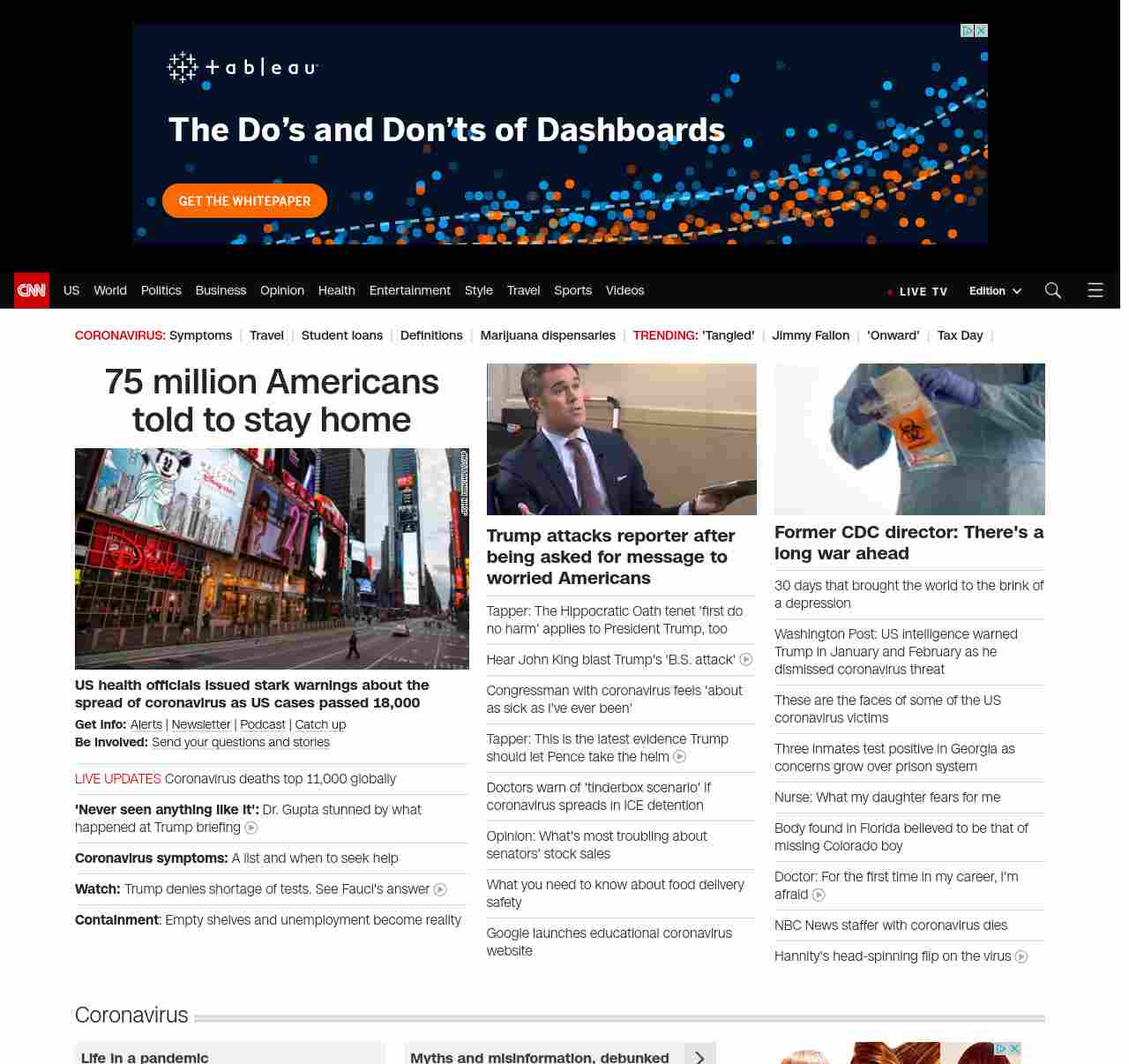 CNN3: “:”u003cstrong>US health officials issued stark warnings about the spread of coronavirus as US cases passed 18, 000u003c/strong>”, “BANNER=|pagerendered| ((lubuntu at wor3))