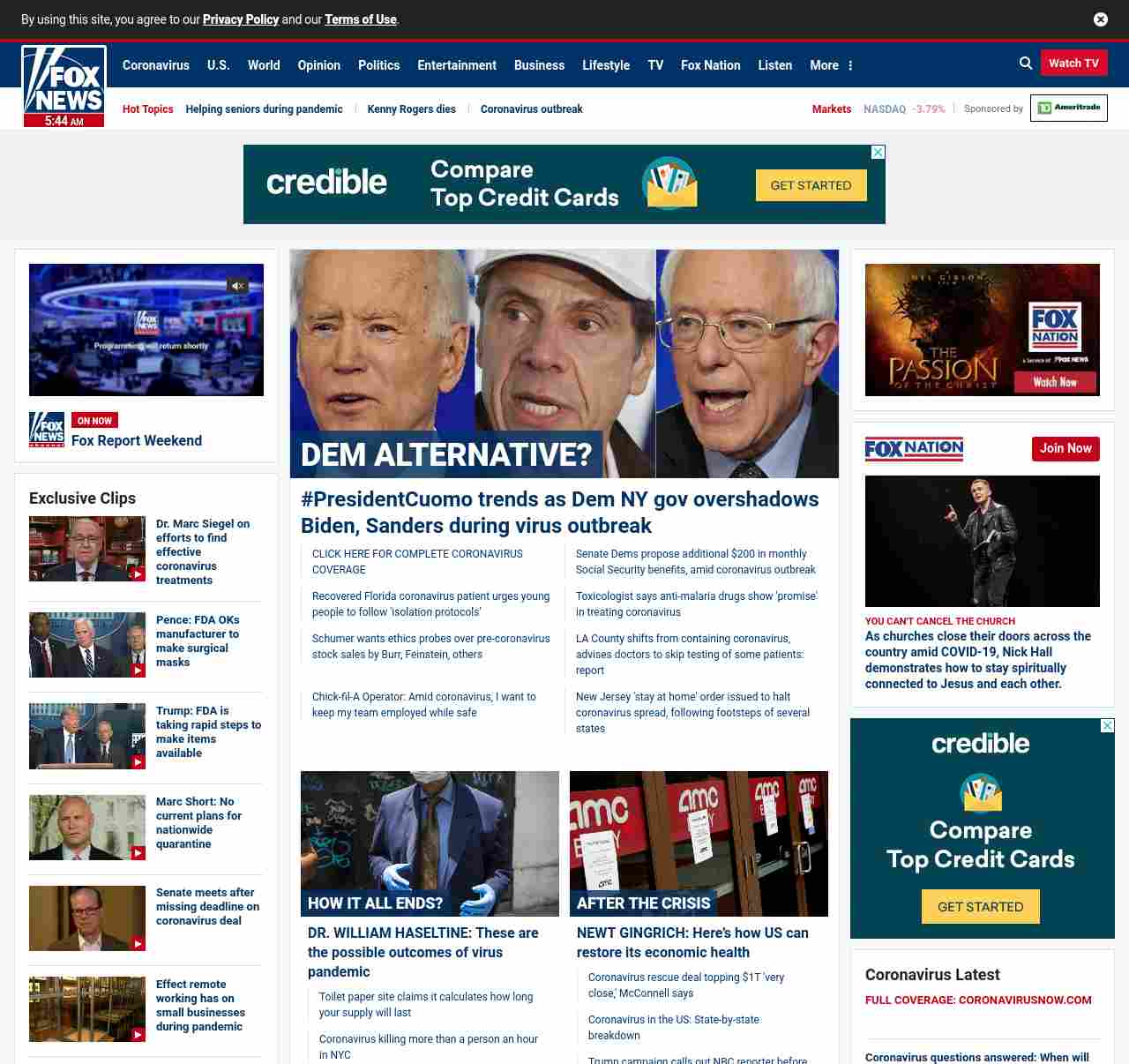 FN: [[DEM ALTERNATIVE?]] Amid outbreak, Cuomo’s profile rising over those of Biden, Sanders, some say ((lubuntu at wor3))