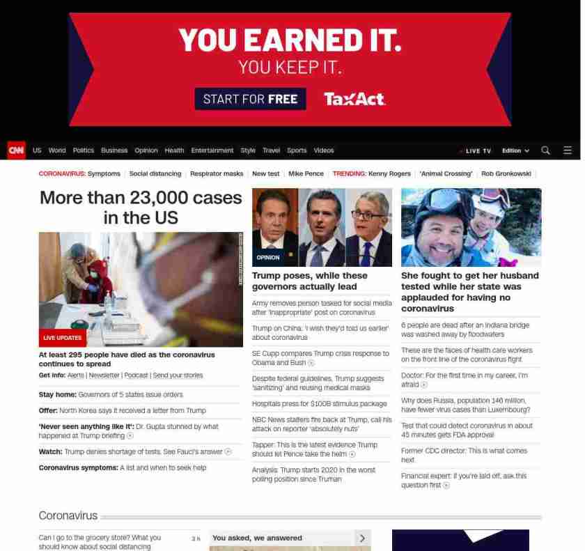CNN3: “:”u003cstrong>There are at least 23,000 cases in the US â a number that has soared as testing becomes more availableu003c/strong>”,”BANNER=|pagerendered| ((lubuntu at wor3))