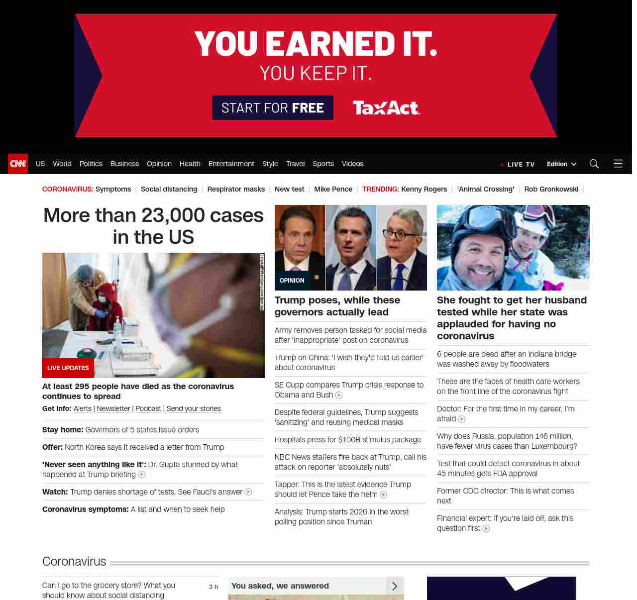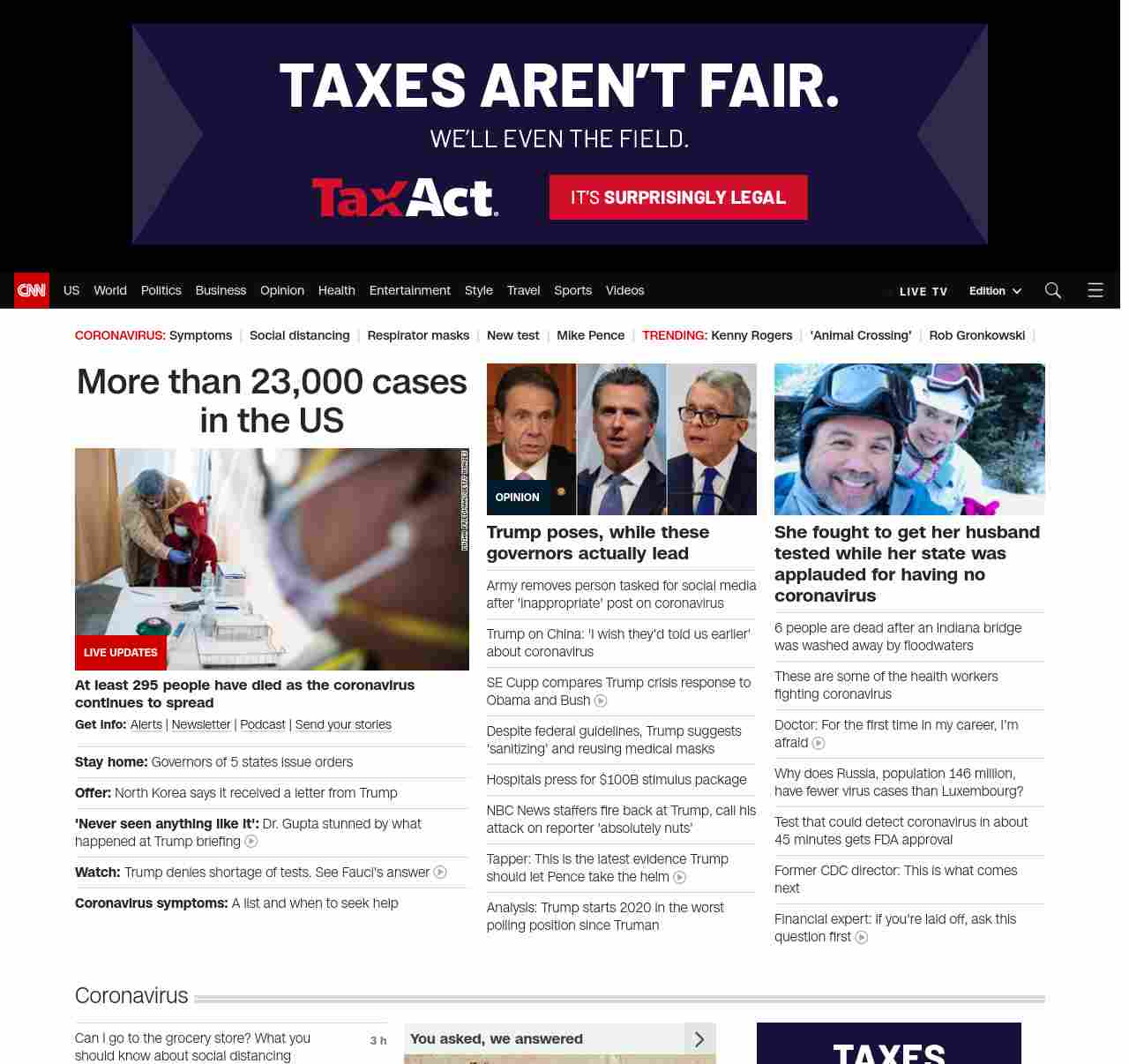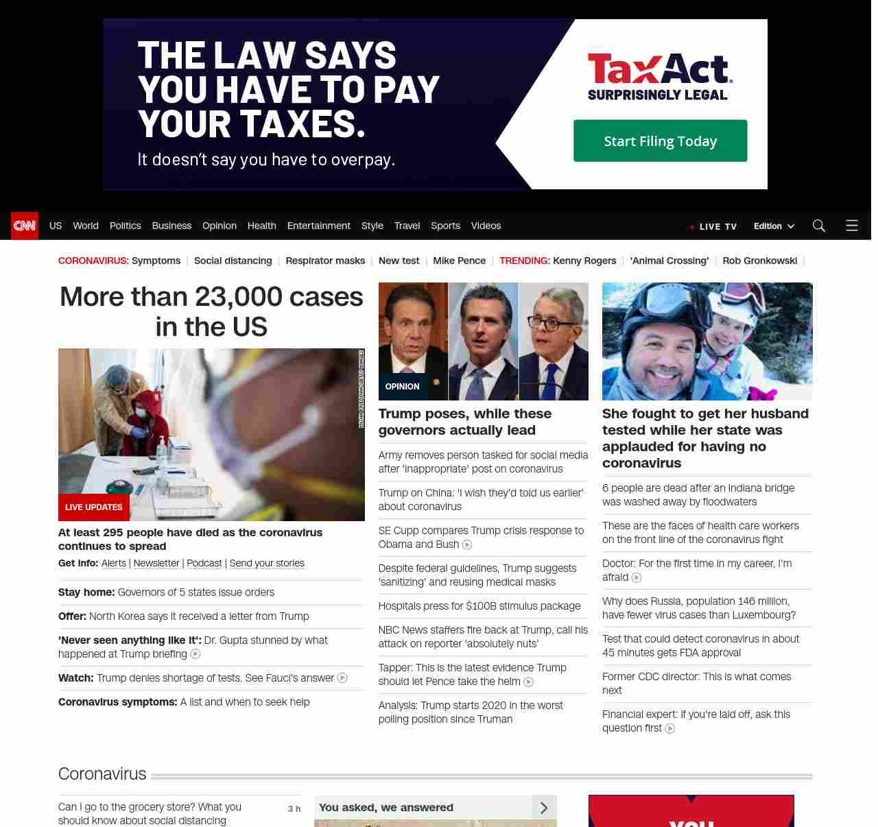 CNN3: “:”u003cstrong>There are at least 23,000 cases in the US â a number that has soared as testing becomes more availableu003c/strong>”,”BANNER=|pagerendered| ((lubuntu at wor3))