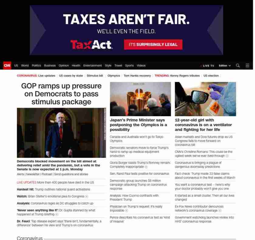 || screaming-banner-text banner-text-size–char-41″ data-analytics=”_list-hierarchical-xs_article_”> Coronavirus cases top 336,000 worldwide ||=”banner-text screaming-banner-text banner-text-size–char-47″ data-analytics=”_list-hierarchical-xs_article_”>GOP ramps up pressure on Democrats to pass stimulus package