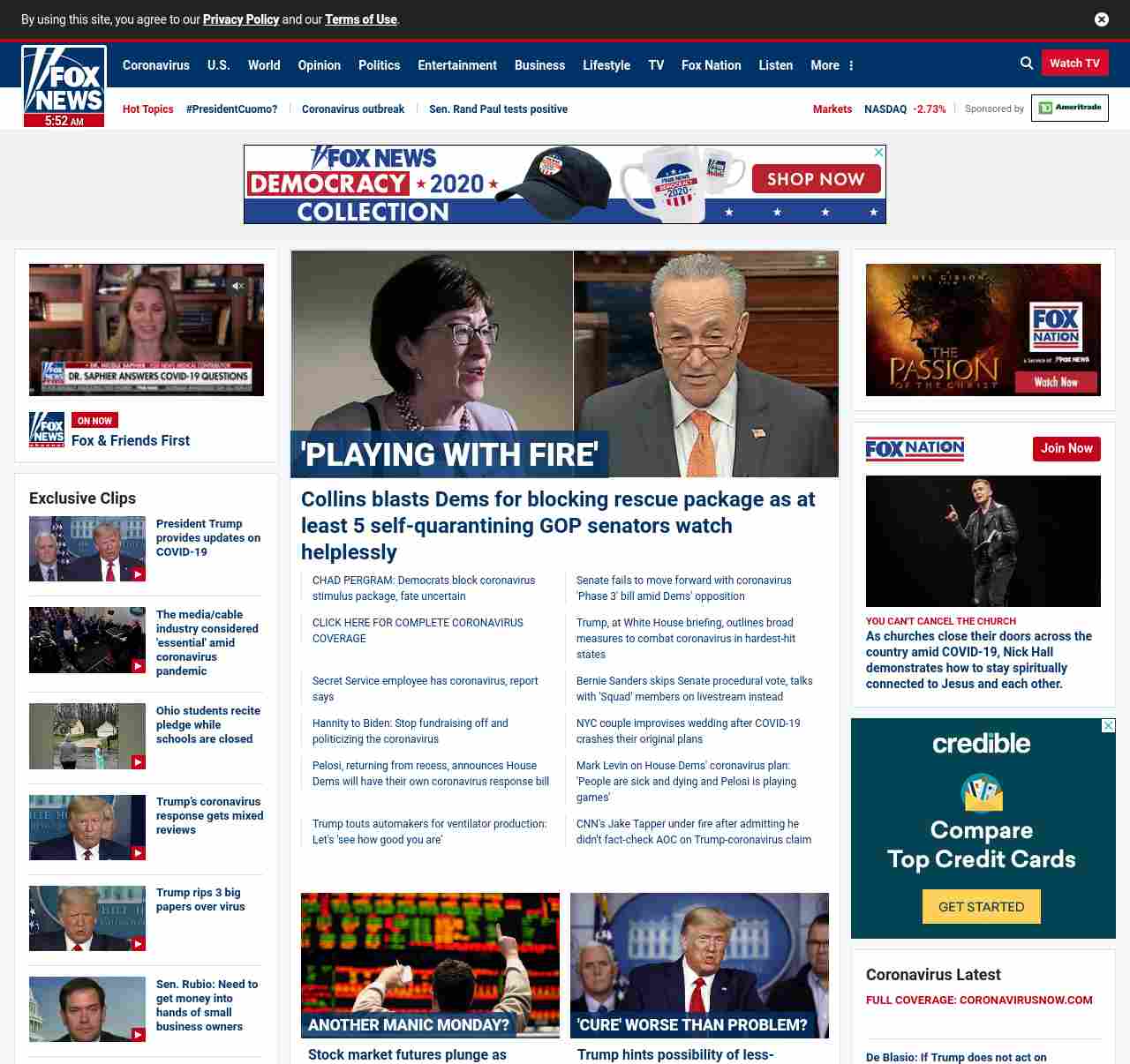 =”https://www.foxnews.com/politics/collins-blasts-democrats-for-blocking-coronavirus-stimulus-plan-says-theyre-playing-with-fire“>Collins blasts Dems for blocking rescue package as at least 5 self-quarantining GOP senators watch helplessly