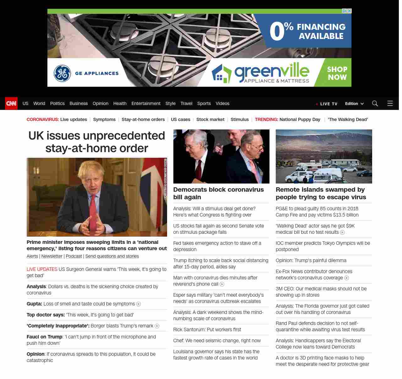|| screaming-banner-text banner-text-size–char-44″ data-analytics=”_list-hierarchical-xs_article_”> UK issues unprecedented stay-at-home order ||” , title: “CNN – Breaking News, Latest News and Videos” , siblings: {“articleList”:[{“uri”:”/2020/03/23/uk/uk-coronavirus-lockdown-gbr-intl/index.html”,”headline”:”u003cstrong>Prime minister imposes sweeping limits in a ‘national emergency,’ listing four reasons citizens can venture outu003c/strong>”,”thumbnail”:”//cdn.cnn.com/cnnnext/dam/assets/200323164412-boris-johnson-uk-lockdown-0323-restricted-small-11.jpg”,”duration”:””,”description”:”u003ca href=”https://www.cnn.com/specials/mobile-apps” target=”_blank”>Alertsu003c/a> | u003ca href=”https://www.cnn.com/specials/coronavirus-newsletter?utm_source=hp&source=hp” target=”_blank”>Newsletteru003c/a> | u003ca href=”https://www.cnn.com/audio/podcasts/corona-virus”>Podcastu003c/a> | u003ca href=”http://www.cnn.com/2020/03/20/us/coronavirus-healthcare-worker-callout/index.html” target=”_blank”>Send questions and storiesu003c/a>”,”layout”:””