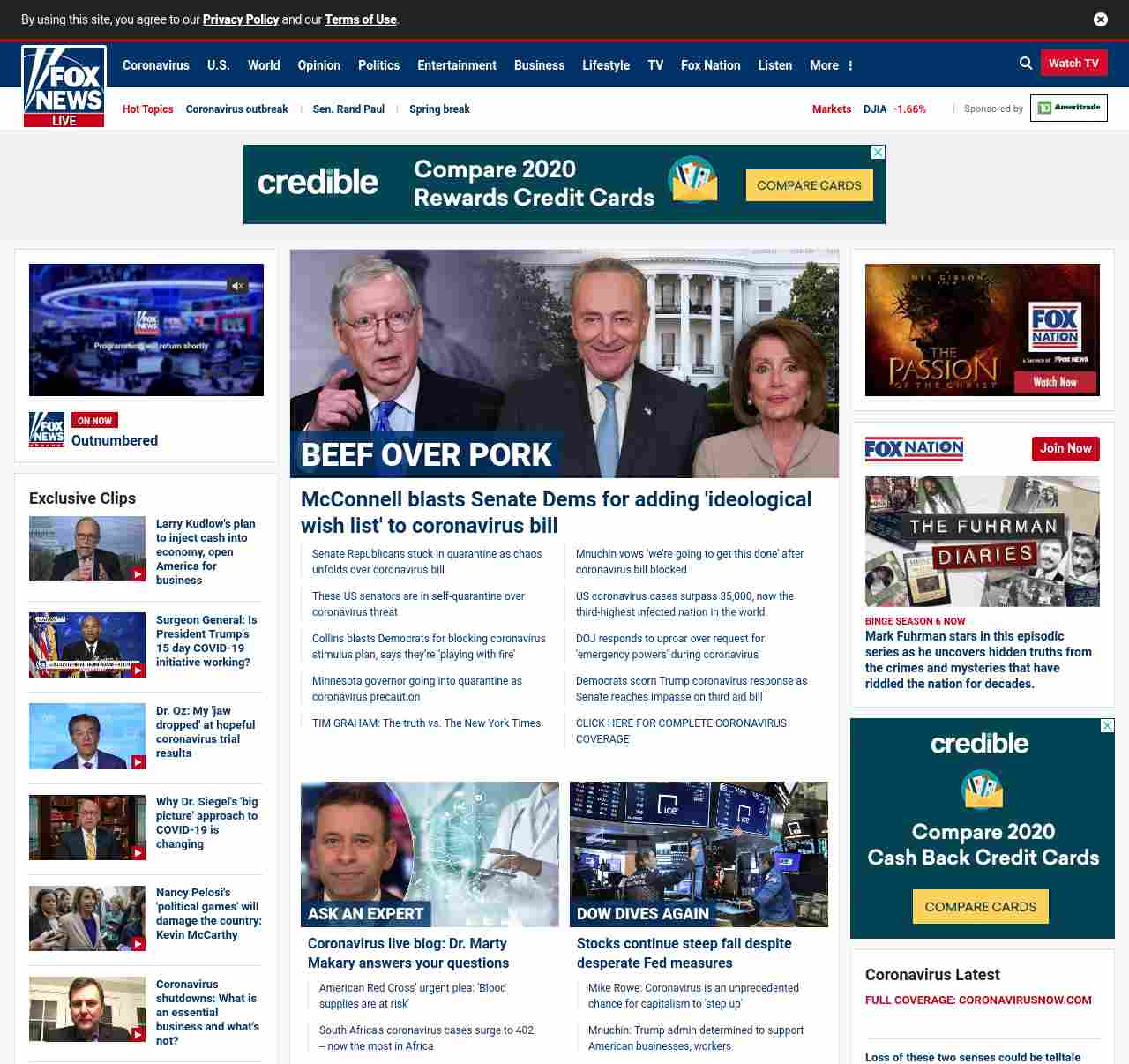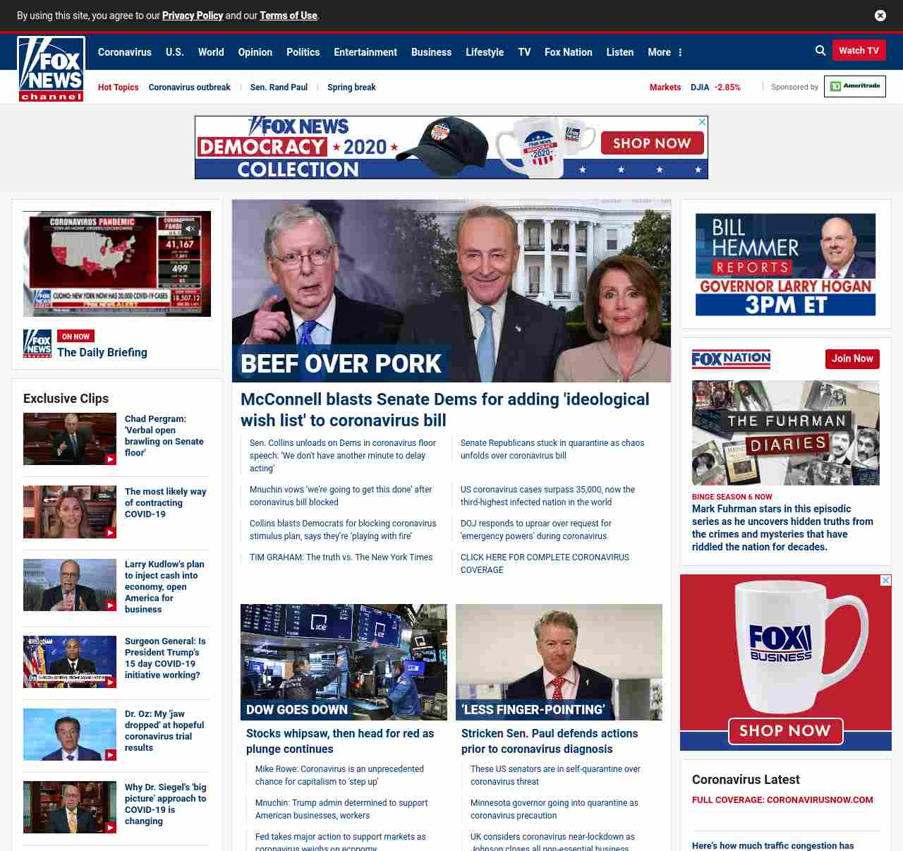 FN: [[BEEF OVER PORK]] McConnell blasts Senate Dems for adding ' ideological wish list' to coronavirus bill ((lubuntu at wor3))