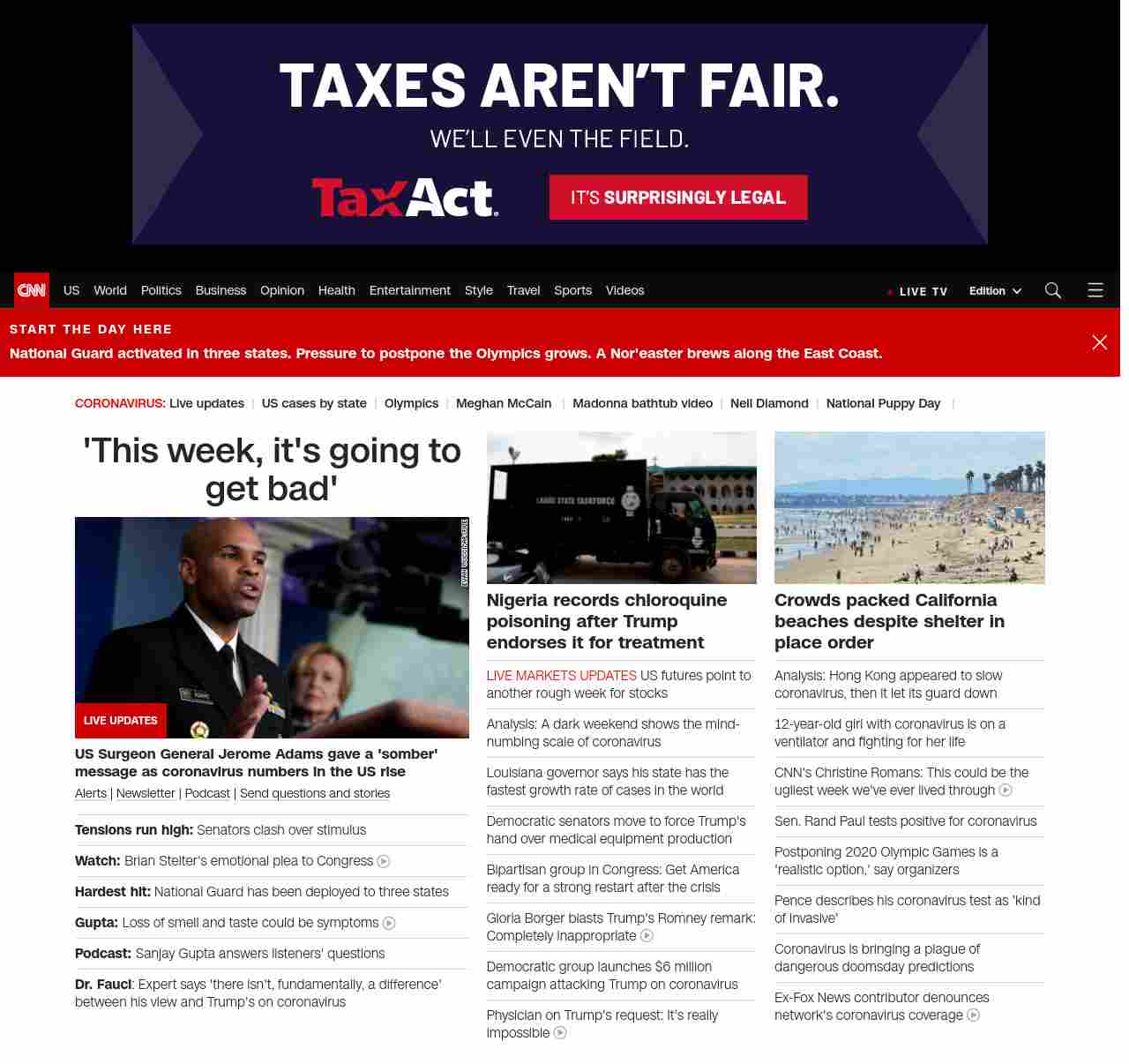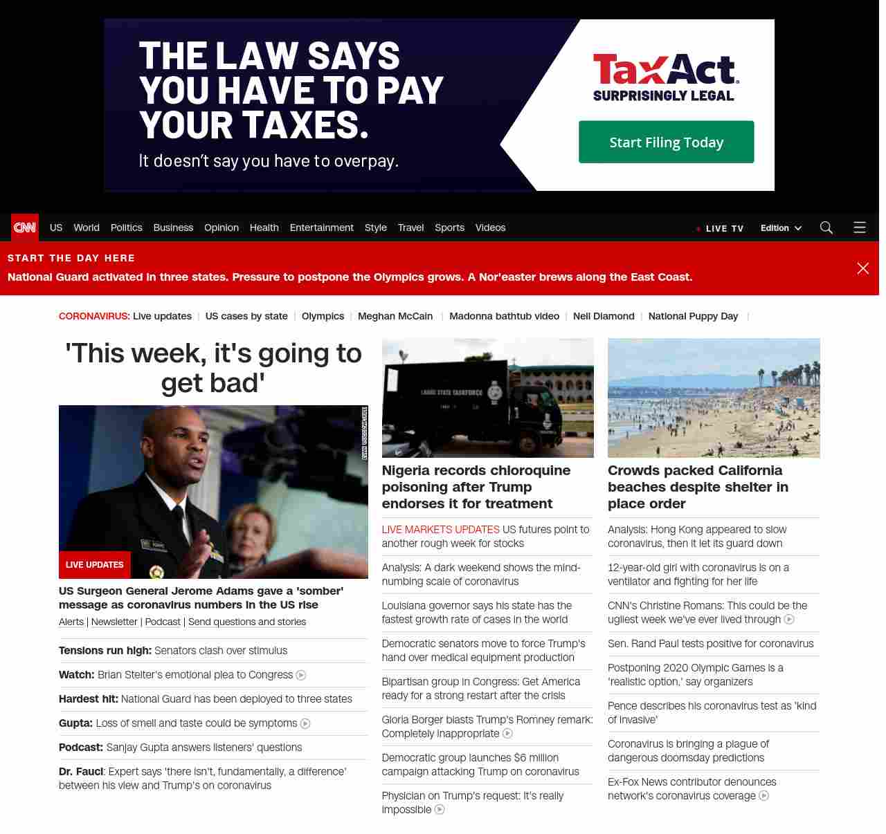 || screaming-banner-text banner-text-size–char-35″ data-analytics=”_list-hierarchical-xs_hyperlink_”> ‘This week, it’s going to get bad’ ||” , title: “CNN – Breaking News, Latest News and Videos” , siblings: {“articleList”:[{“uri”:”/2020/03/23/politics/coronavirus-economic-stimulus-senate/index.html”,”headline”:”u003cstrong>Tensions run high:u003c/strong> Senators clash over stimulus”,”thumbnail”:”//cdn.cnn.com/cnnnext/dam/assets/200309180917-mcconnell-schumer-file-small-11.jpg”,”duration”:””,”description”:”u003ca href=”https://www.cnn.com/specials/mobile-apps” target=”_blank”>Alertsu003c/a> | u003ca href=”https://www.cnn.com/specials/coronavirus-newsletter?utm_source=hp&source=hp” target=”_blank”>Newsletteru003c/a> | u003ca href=”https://www.cnn.com/audio/podcasts/corona-virus”>Podcastu003c/a> | u003ca href=”http://www.cnn.com/2020/03/20/us/coronavirus-healthcare-worker-callout/index.html” target=”_blank”>Send questions and storiesu003c/a>”,”layout”:””