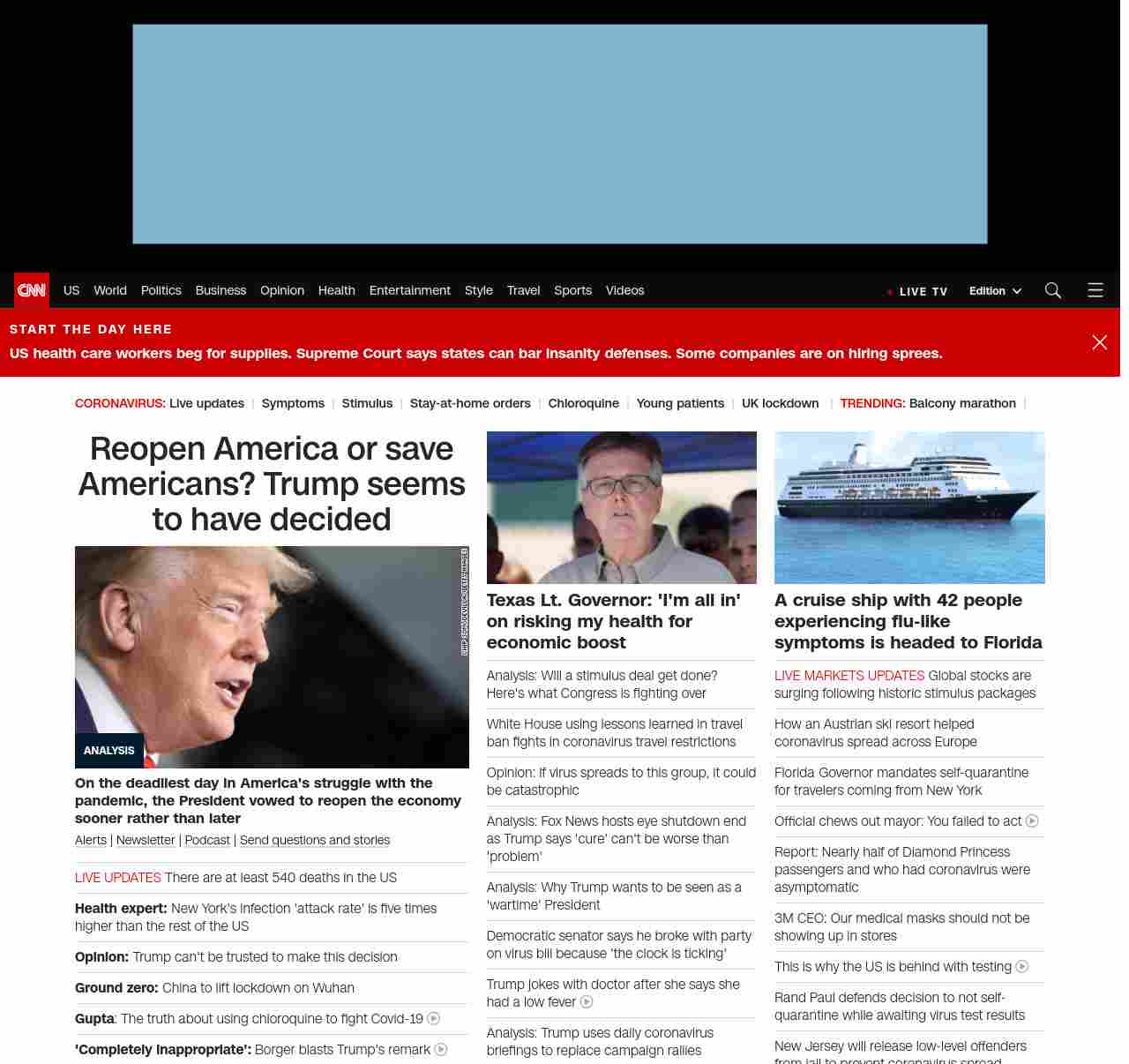 CNN2: subjectpartBANNER=|=”banner-text screaming-banner-text banner-text-size–char-47″ data-analytics=”_list-hierarchical-xs_article_”>Reopen America or save Americans? Trump seems to have decided| ((lubuntu at wor3))