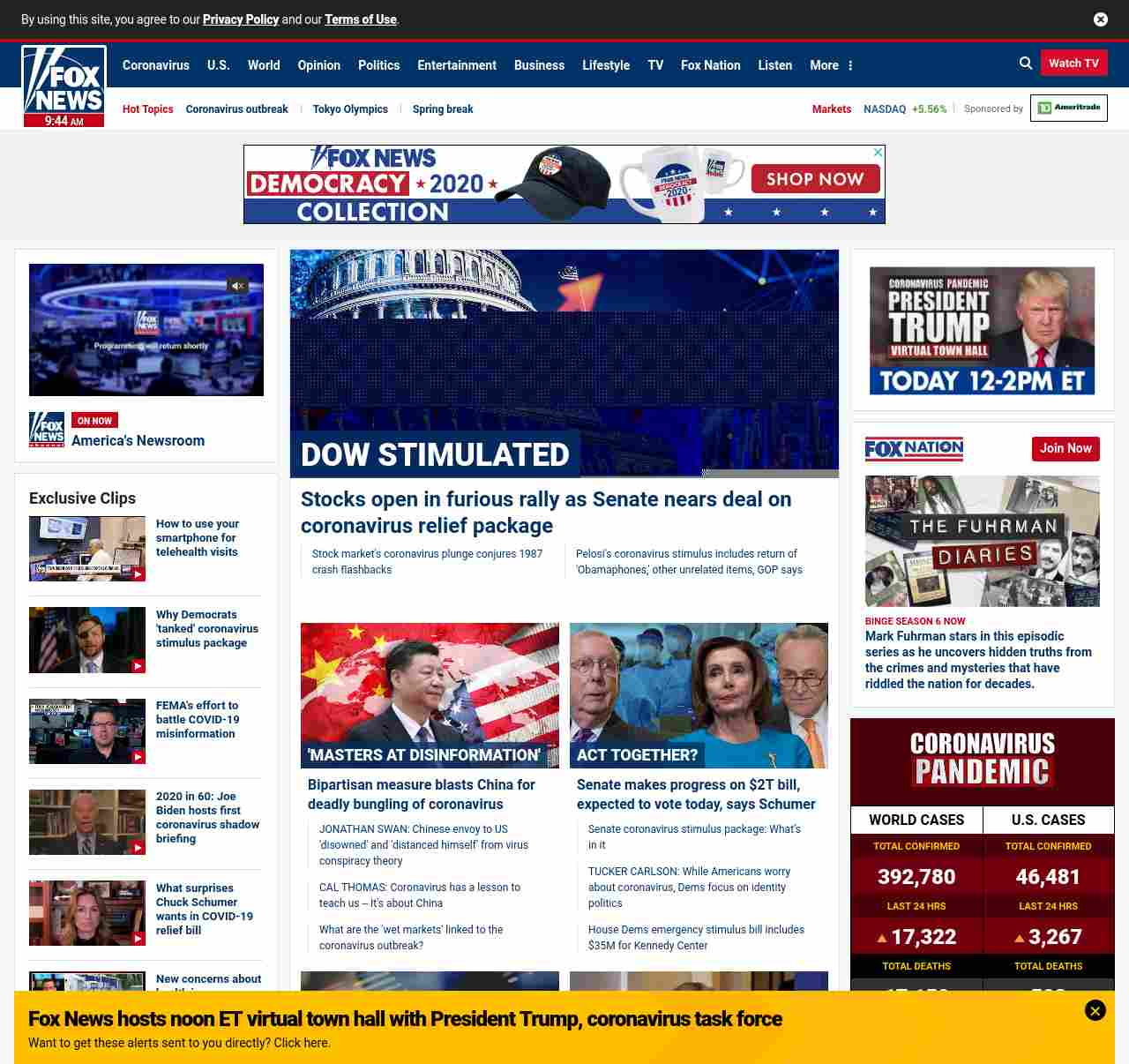 =”https://www.foxbusiness.com/markets/us-stocks-march-24-2020“>Stocks open in furious rally as Senate nears deal on coronavirus relief package